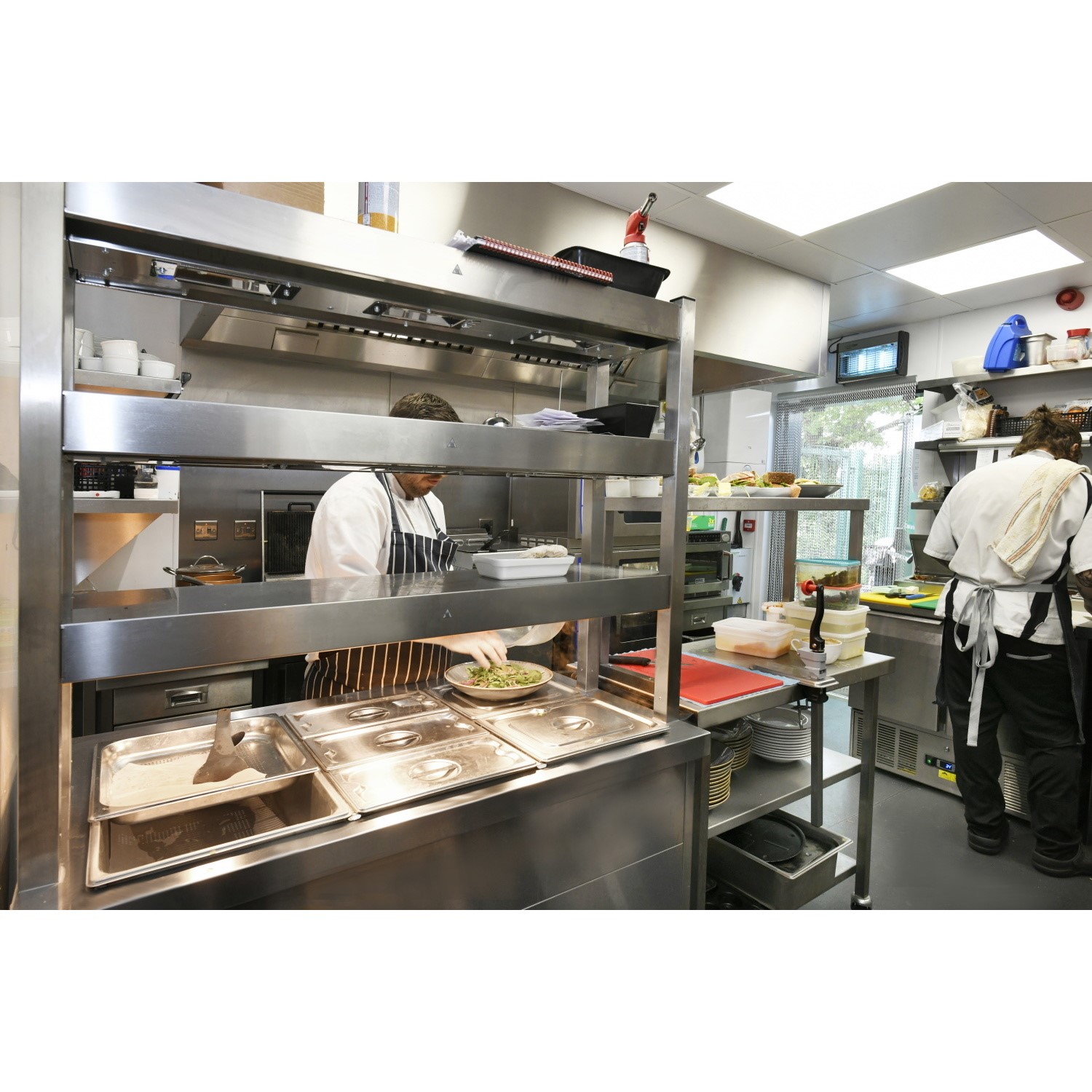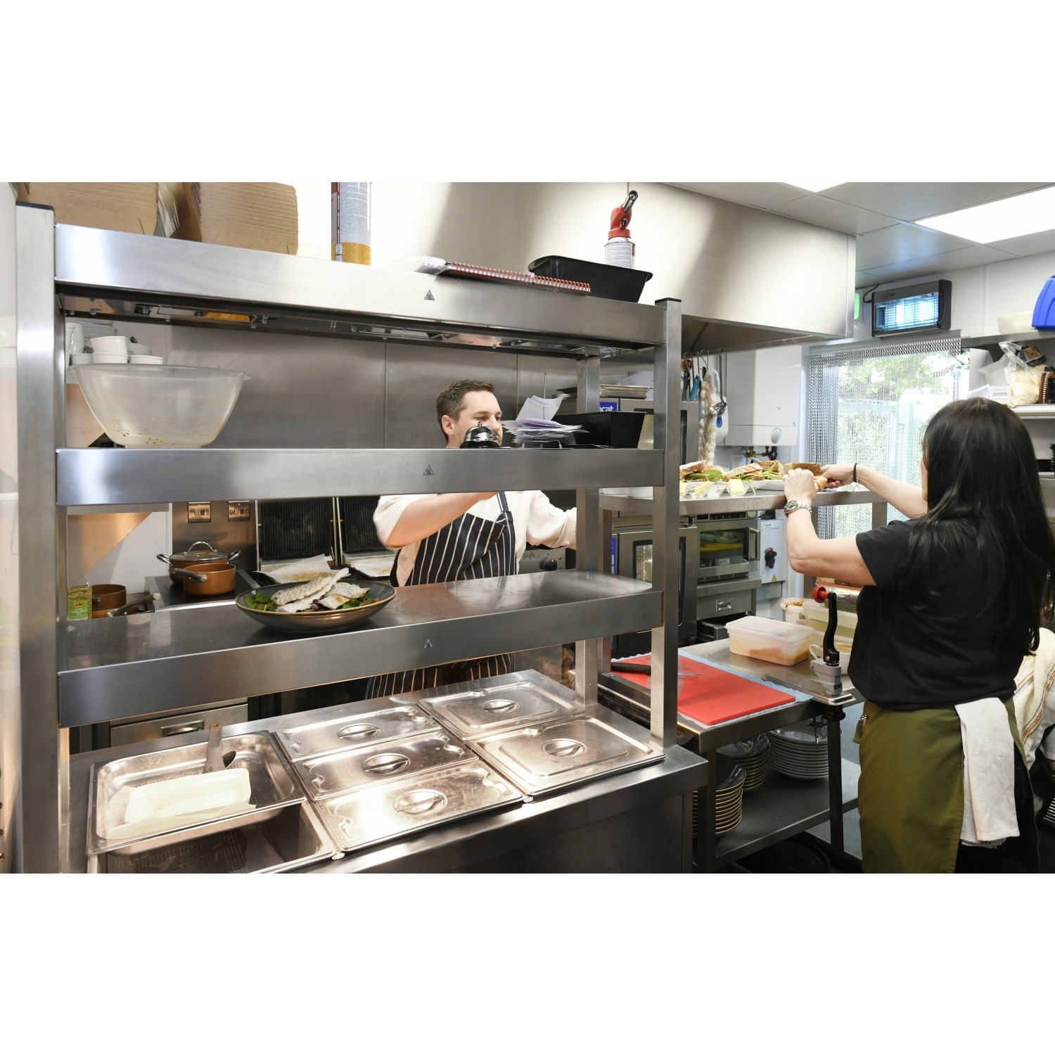 - Bain Marie Top with 2 x 1/1 GN: Integrated wet heat top for holding sauces, sides, or prepared dishes during service.