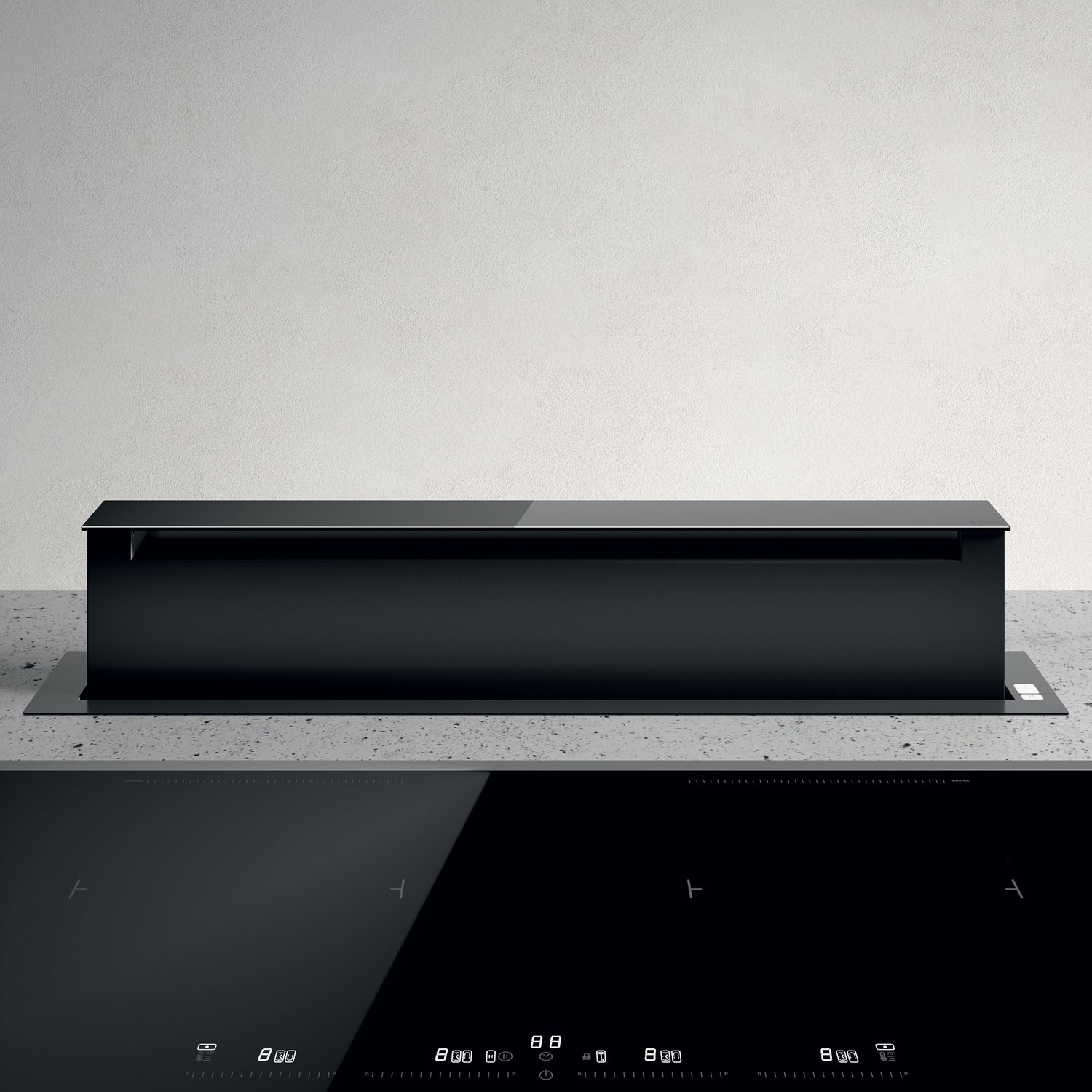 Situated inside your cooktop, this Elica downdraft extractor hood only needs to come out when you are actually cooking. Designed with a black finish, this hood is perfect for those looking for a modern, minimalistic look. With three fan speeds and a booster function with an extraction rate of 669 cubic metres per hour, you control the way the hood runs to suit your kitchen environment.