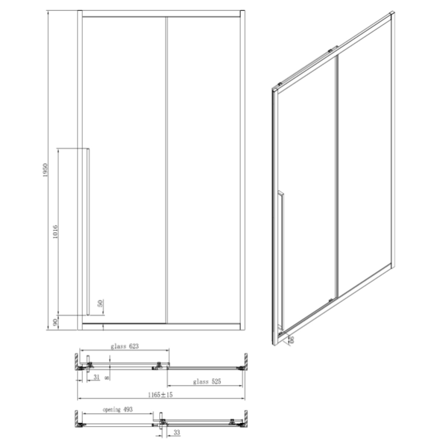 With an adjustable width of 1165–1180mm, this shower door is ideal for alcove installations. The 493mm entry width ensures easy access while the sliding mechanism saves on space, making it perfect for smaller or more efficient layouts.