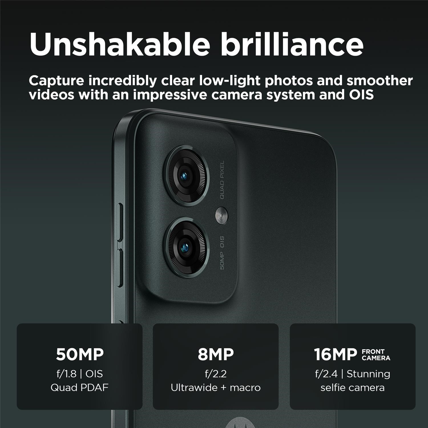 <b>Engineered to entertain</b><br>Introducing the phone with entertainment in its DNA. New moto g55 5G. Bring programmes, films and games to life on its immersive 6.49" FHD+ 120 Hz display.(1) Hear sound from every direction with stereo speakers and Dolby Atmos®.(2) Capture incredibly clear photos and smoother videos with a 50 MP camera system featuring optical image stabilisation (OIS).(3) And stand out with an eye-catching design, including options in soft vegan leather. With moto g55 5G, you can binge watch non-stop thanks to a long-lasting battery and speedy charging. Hold more of your favourites with tons of built-in storage. And unleash entertainment at 5G speed with a powerful octa-core processor. moto g55 5G takes entertainment to a whole new level.