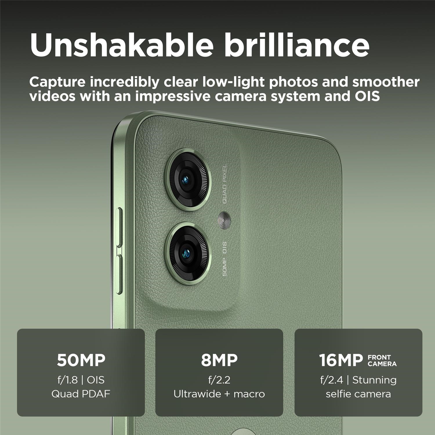 <b>Engineered to entertain</b><br>Introducing the phone with entertainment in its DNA. New moto g55 5G. Bring programmes, films and games to life on its immersive 6.49" FHD+ 120 Hz display.(1) Hear sound from every direction with stereo speakers and Dolby Atmos®.(2) Capture incredibly clear photos and smoother videos with a 50 MP camera system featuring optical image stabilisation (OIS).(3) And stand out with an eye-catching design, including options in soft vegan leather. With moto g55 5G, you can binge watch non-stop thanks to a long-lasting battery and speedy charging. Hold more of your favourites with tons of built-in storage. And unleash entertainment at 5G speed with a powerful octa-core processor. moto g55 5G takes entertainment to a whole new level.