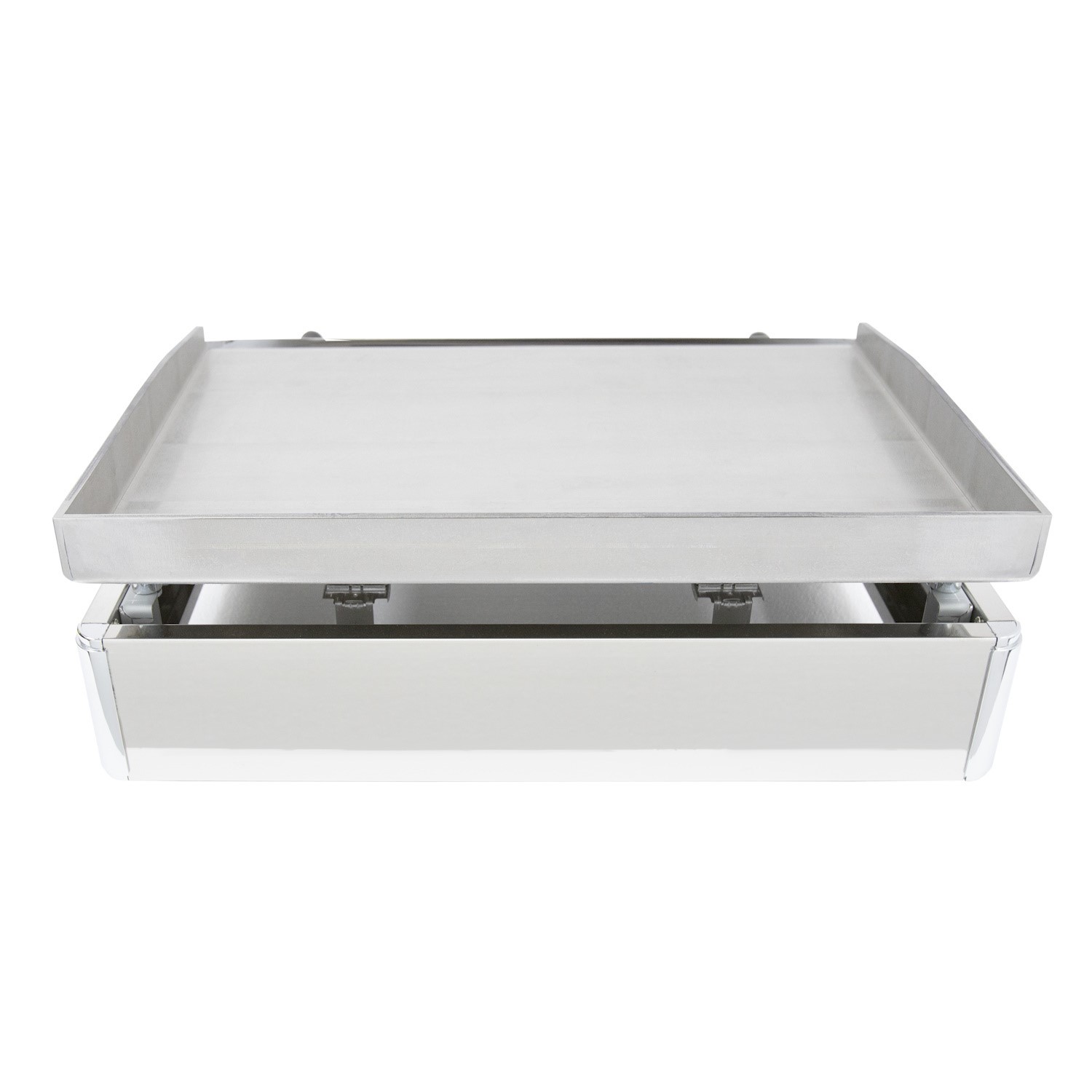 For added convenience, a natural gas conversion kit is included so that you don’t have to worry about buying one separately. The temperature settings are easy to adjust with simple knob dial controls whilst the large cooking area makes it suitable for any type of food preparation. The beauty of this polished plate is that it can be easily scraped and cleaned. The integrated drip tray allows for easy disposal of any scraps and fats. These units must be installed by a registered commercial gas engineer.