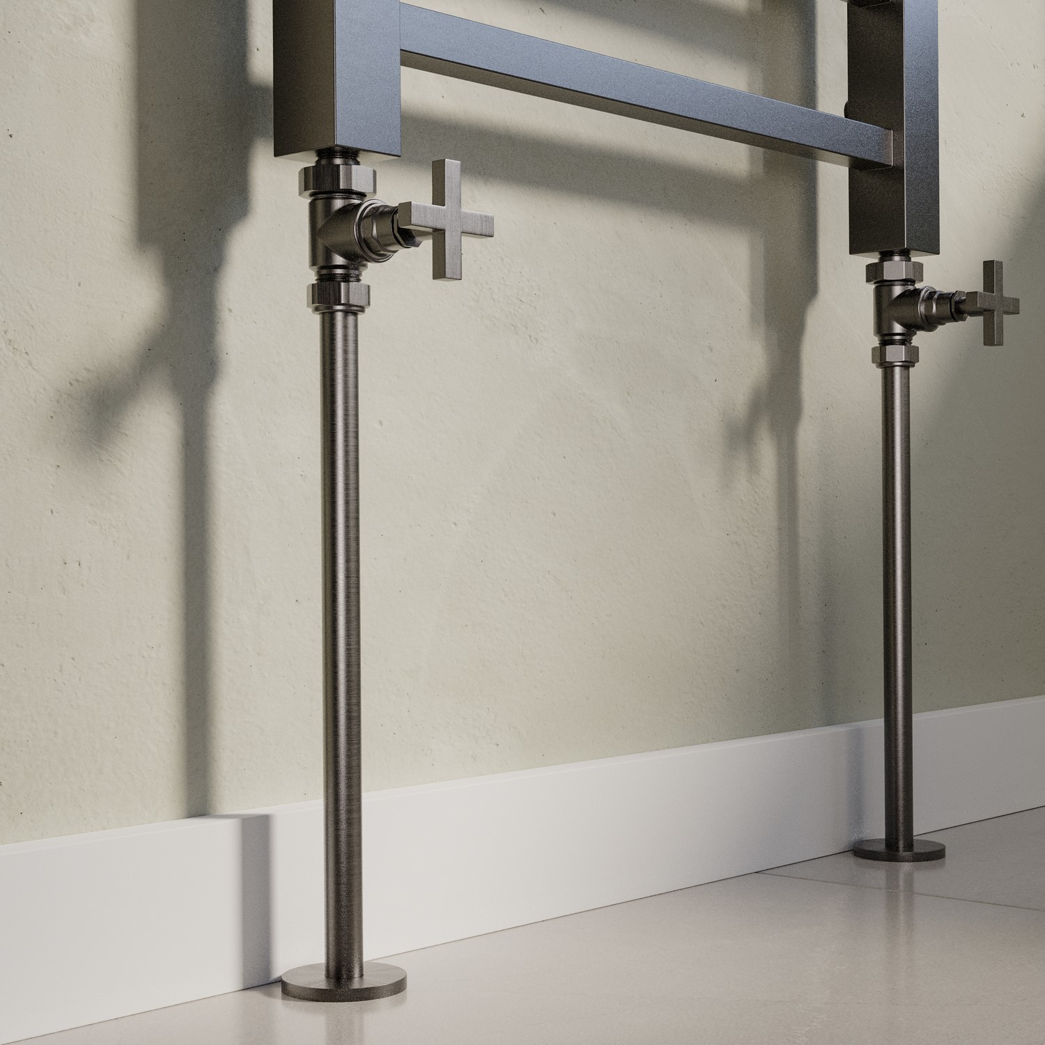 Sleek finish: This gunmetal radiator pipe cover kit is designed to conceal visible 15mm pipework between your floor, wall and radiator valves.