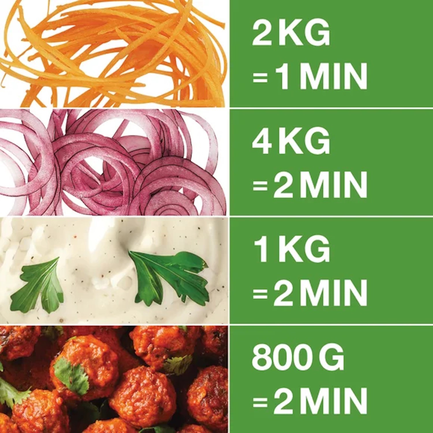 - Standard Inclusions: Supplied with smooth blade assembly, 2 mm slicing disc, and 2 mm grating disc as standard.