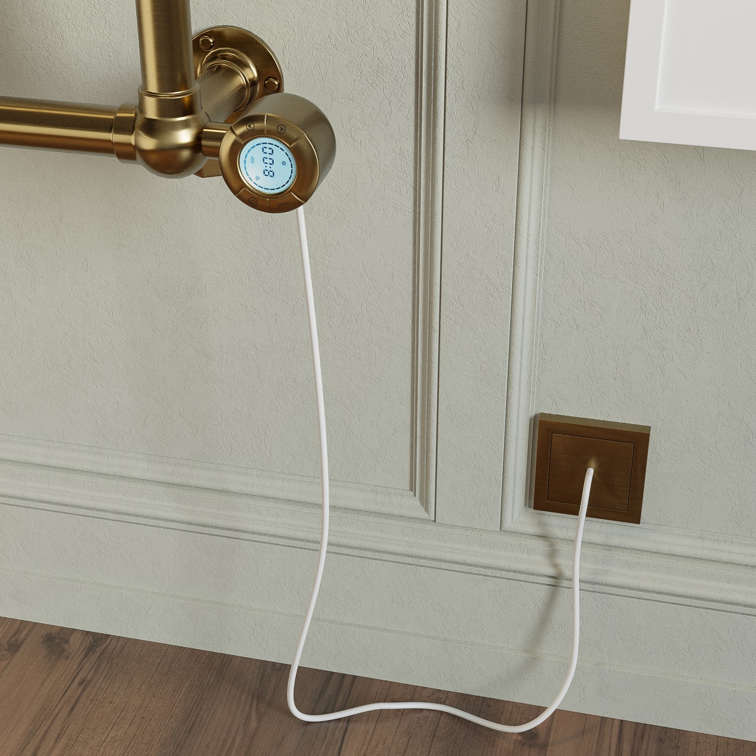 The Regent electric towel rail is the perfect solution for those seeking a traditional touch in their bathroom. The sleek, wall hung vertical profile is ideal for smaller spaces such as cloakrooms, while the brushed brass finish brings elegance and warmth to any setting. Made from mild steel, the radiator offers durability, excellent heat conduction, and resistance to rust, making it perfect for humid bathroom environments. As well as the 5 functionalities, this radiator features open window detection to save energy by detecting sudden temperature drops, and a child safety lock to prevent accidental adjustments, ensuring safety in your home. Designed for easy wall mounting, it efficiently warms towels and provides comfortable bathroom heating.