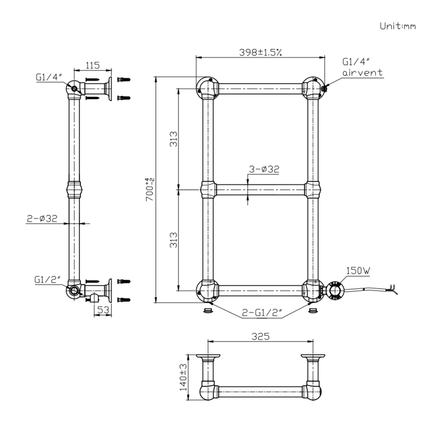 - Radiator Dimensions: H700 x W400 x D140 mm