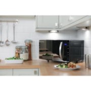The RHFM2363B Russell Hobbs black microwave is modern and has a stylish mirror door. This 23 Litre microwave is 800W, has 5 microwave power levels, including defrost, and features a 95 minute timer with a large dial display.