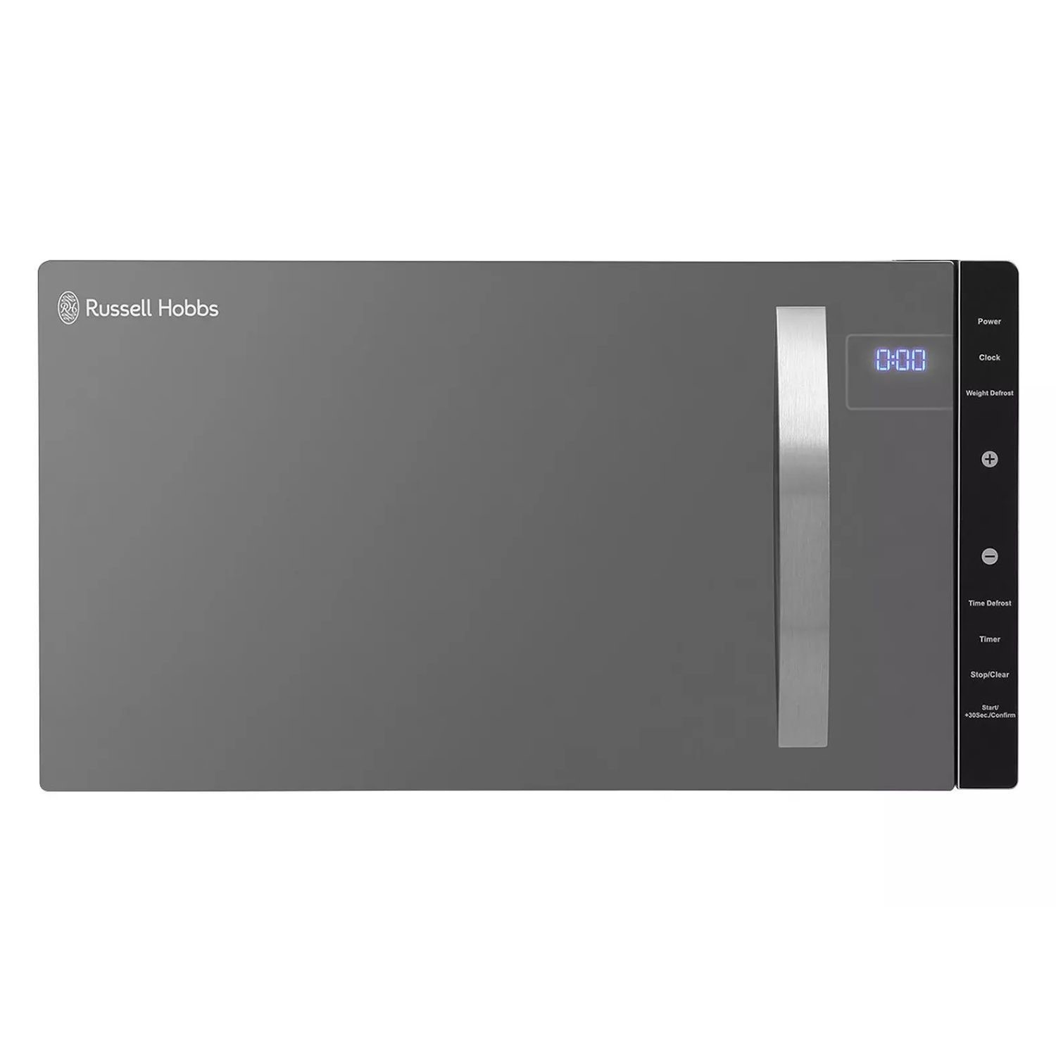 The Russell Hobbs silver microwave is modern and has a stylish mirror door. This 23 Litre microwave is 800W, has 5 microwave power levels, including defrost and features a 95 minute timer with a large dial display. We believe the kitchen is the heart of the home so this microwave features a removable glass turn table for easy cleaning and simple, functional manual control dials.