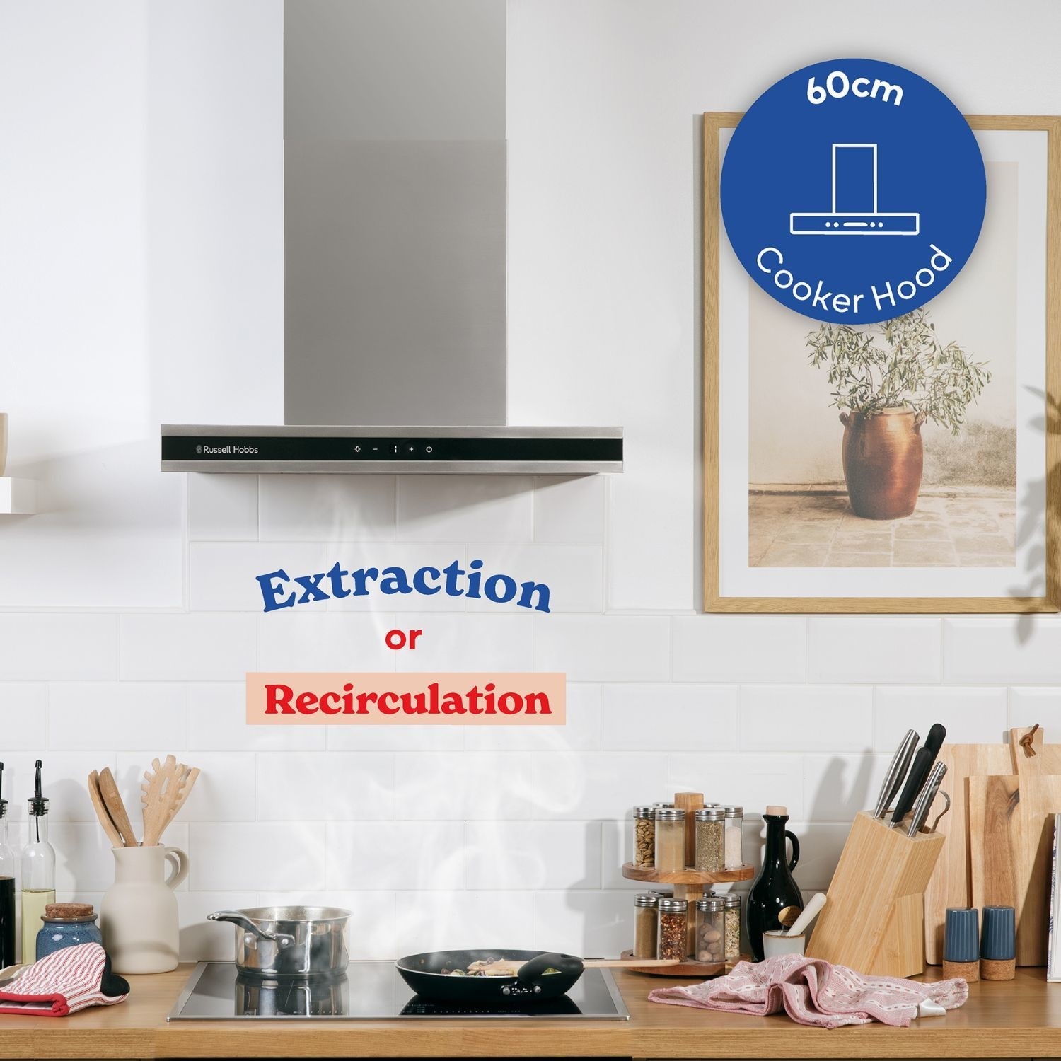 Built to work hard and look good doing it, this 60cm T-shaped Stainless-Steel Cooker Hood keeps your kitchen clear, fresh, and ready for whatever you’re cooking next. Designed to fit seamlessly into any kitchen layout, this cooker hood lets you choose between Extraction Mode, which vents cooking fumes outside, or Recirculation Mode, which filters the air using aluminium filters. With a powerful 650 m³/h extraction rate, it’s ideal for medium to large kitchens, quickly clearing steam, smoke, and odours to keep your space fresh while you cook. Tailor your cooking experience with 3 speed settings: Low for gentle simmering, Medium for everyday cooking, and High for stronger extraction when needed.