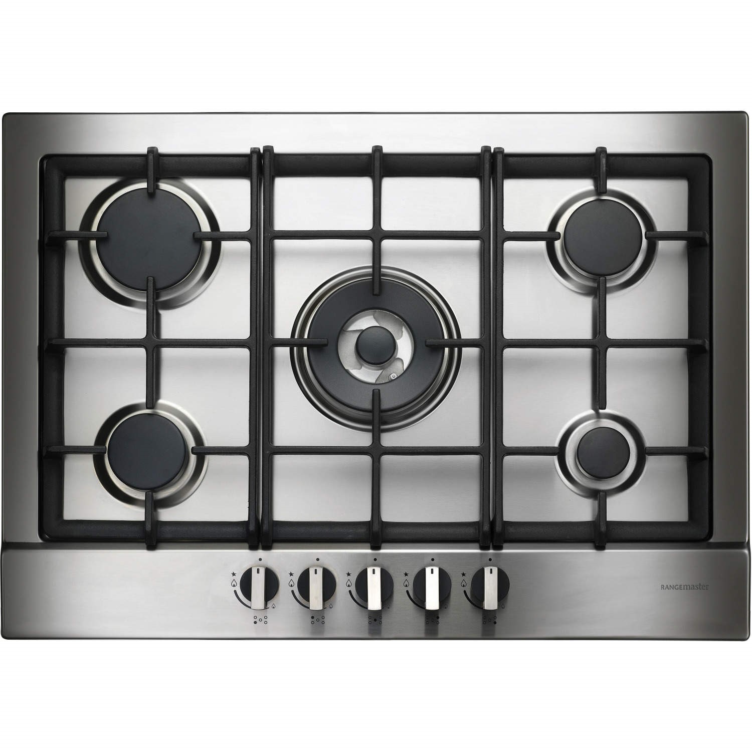 - Five burners in various sizes, including triple ring wok burner