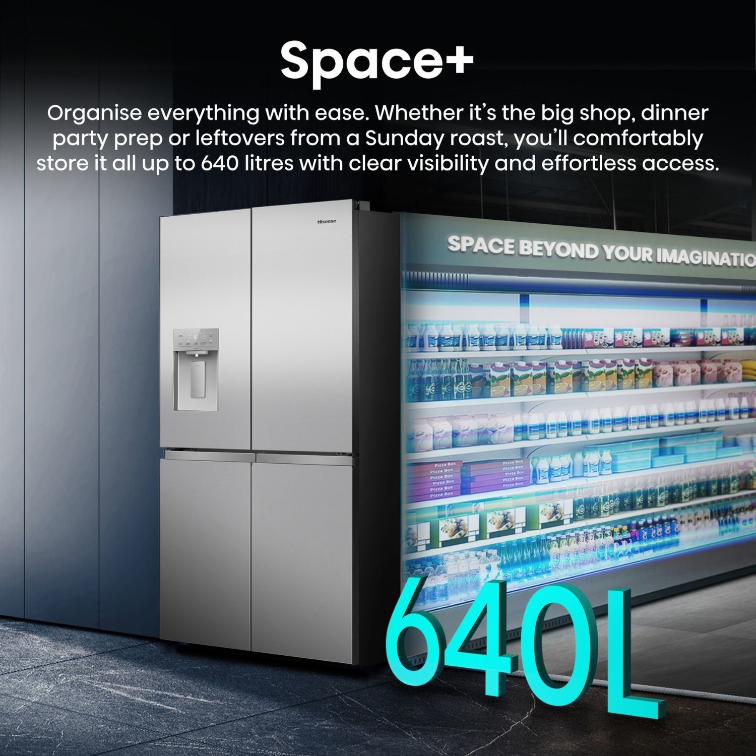 Organise everything with ease. Whether it’s the big shop, dinner party prep or leftovers from a Sunday roast, you’ll comfortably store it all up to 640 litres with clear visibility and effortless access.