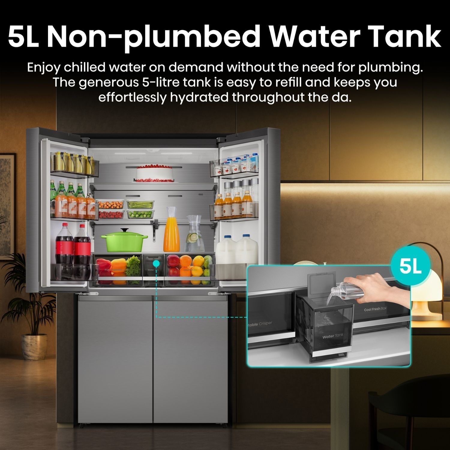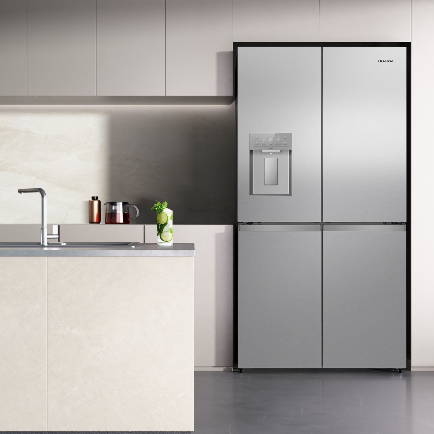 Introducing the New Hisense PureFlex Step into the next generation of kitchen innovation with the all-new Hisense PureFlex range where premium design meets advanced technology. Available in Plain Door Water & Ice. Crafted for the modern home, PureFlex blends stunning aesthetics with intelligent features. At its core, a 99.9% UV sterilisation system purifies water and ice before dispensing delivering the cleanest, freshest hydration every time. Customise your experience with cubed or nugget ice options. Inside, the PureFlex is just as impressive with new split cantilever shelves and sliding trays offering maximum flexibility.