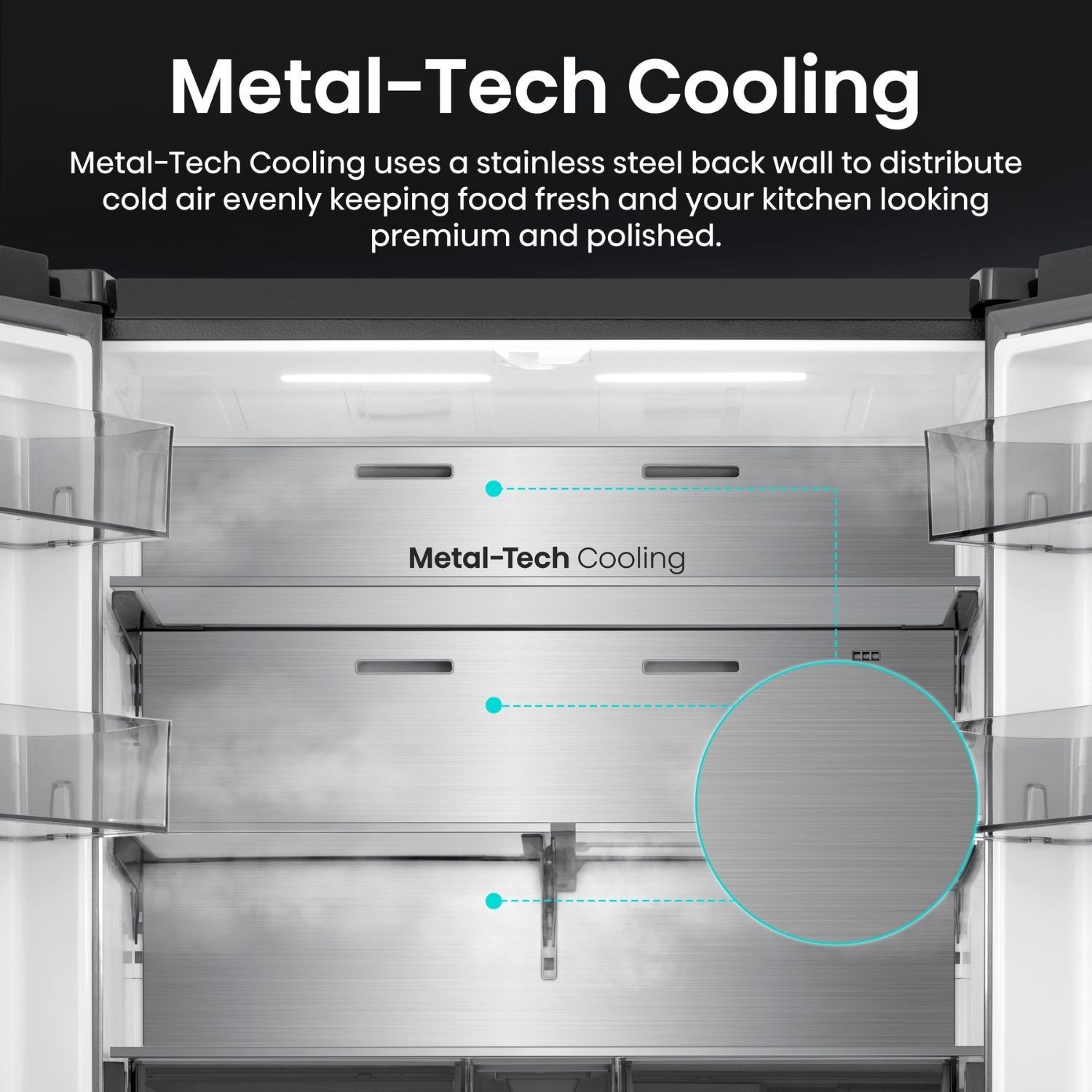 Tall bottles? Big platters? No problem. Split cantilever shelves and a sliding section give you flexible storage that adapts to whatever you’re putting in your fridge.
