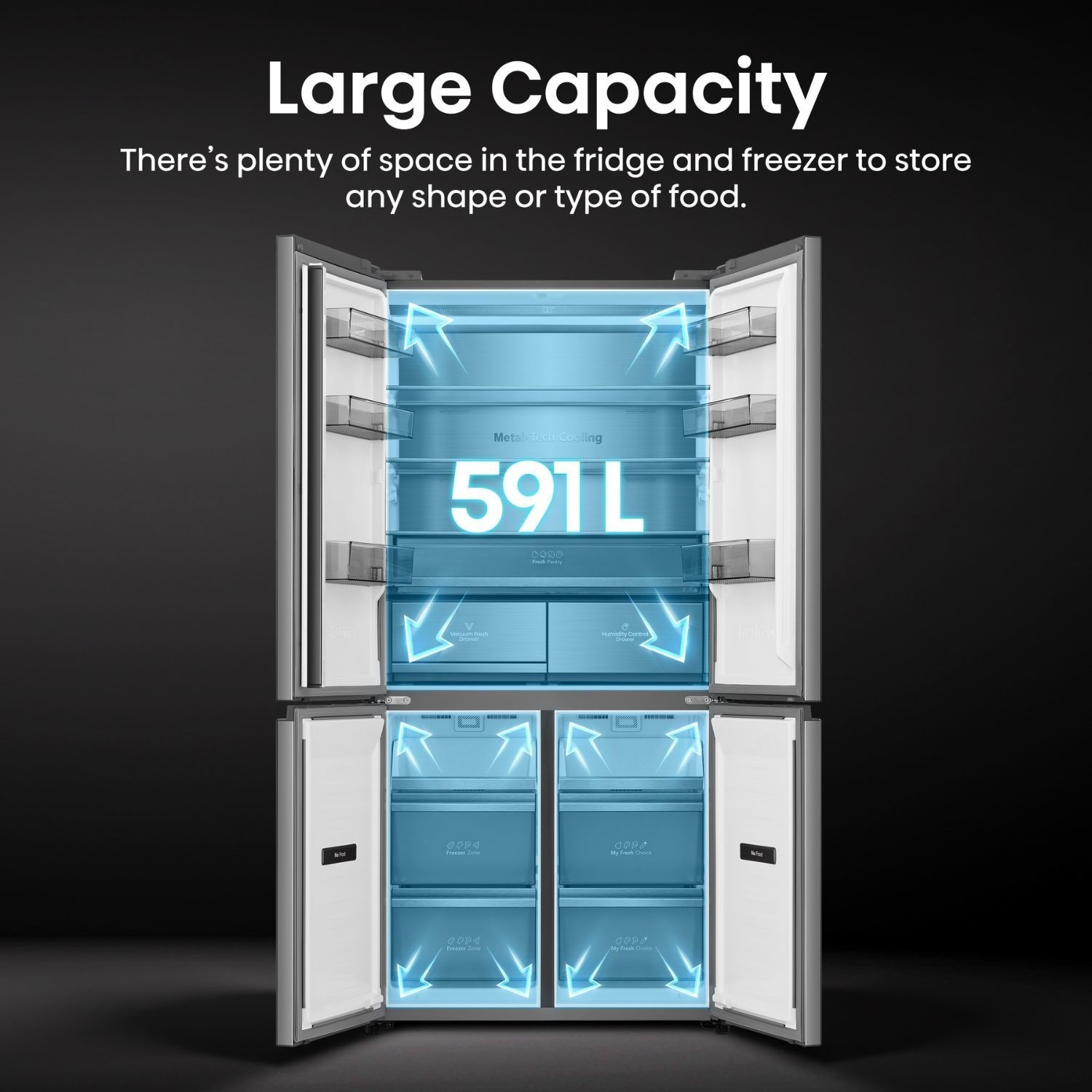 The Hisense RQ768N4GVE with Kitchen Fit seamlessly integrates into your kitchen with its minimal yet stylish aesthetic. Whilst design is key, our Kitchen Fit is so much more. Packed with existing Hisense Features and more! With only about 60cm in depth, our product is designed to fit in to almost any kitchen space, you don’t have to compromise thanks to the improved hinge design giving you over 100 degrees of door opening with only a 3mm gap around. With Wi-Fi connectivity, you can use the ConnectLIFE app to control your refrigerator to montior and set the temperature as well as food inventory lists.