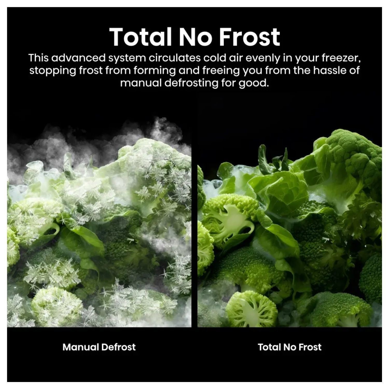 Total no frost tech prevents ice buildup automatically. This eliminates the need for manual defrosting, saving you time and effort.