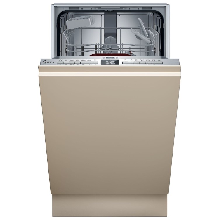 The Neff S875HKX32G fully integrated slimline dishwasher is the perfect space-saving solution for smaller kitchens that do not want to compromise on cleaning power. With 10 place settings, it is ideal for couples or smaller households, easily handling everything from your morning coffee mugs to large dinner plates. It is designed to take the hassle out of your post-dinner cleanup, featuring a powerful motor that ensures your crockery comes out spotless every single time