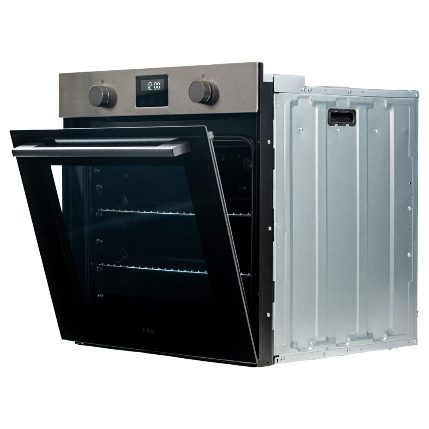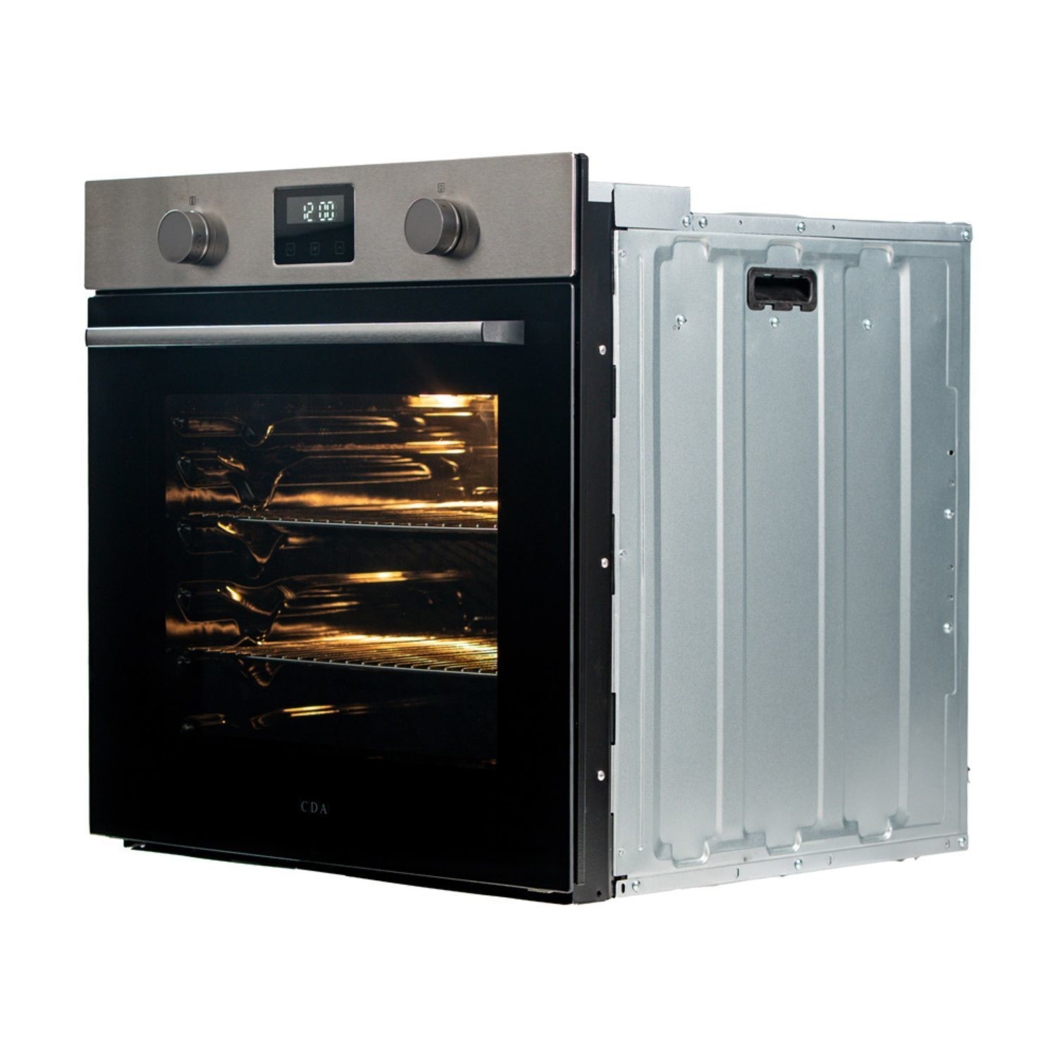 The SC200 oven has an extra-large 76L capacity and easy-to-operate rotary controls. The oven has 7 oven functions, including fan, fan-assisted, conventional, and grill settings. The oven also features a touch control digital clock and timer, as well as a removable door and inner glass for easy cleaning.