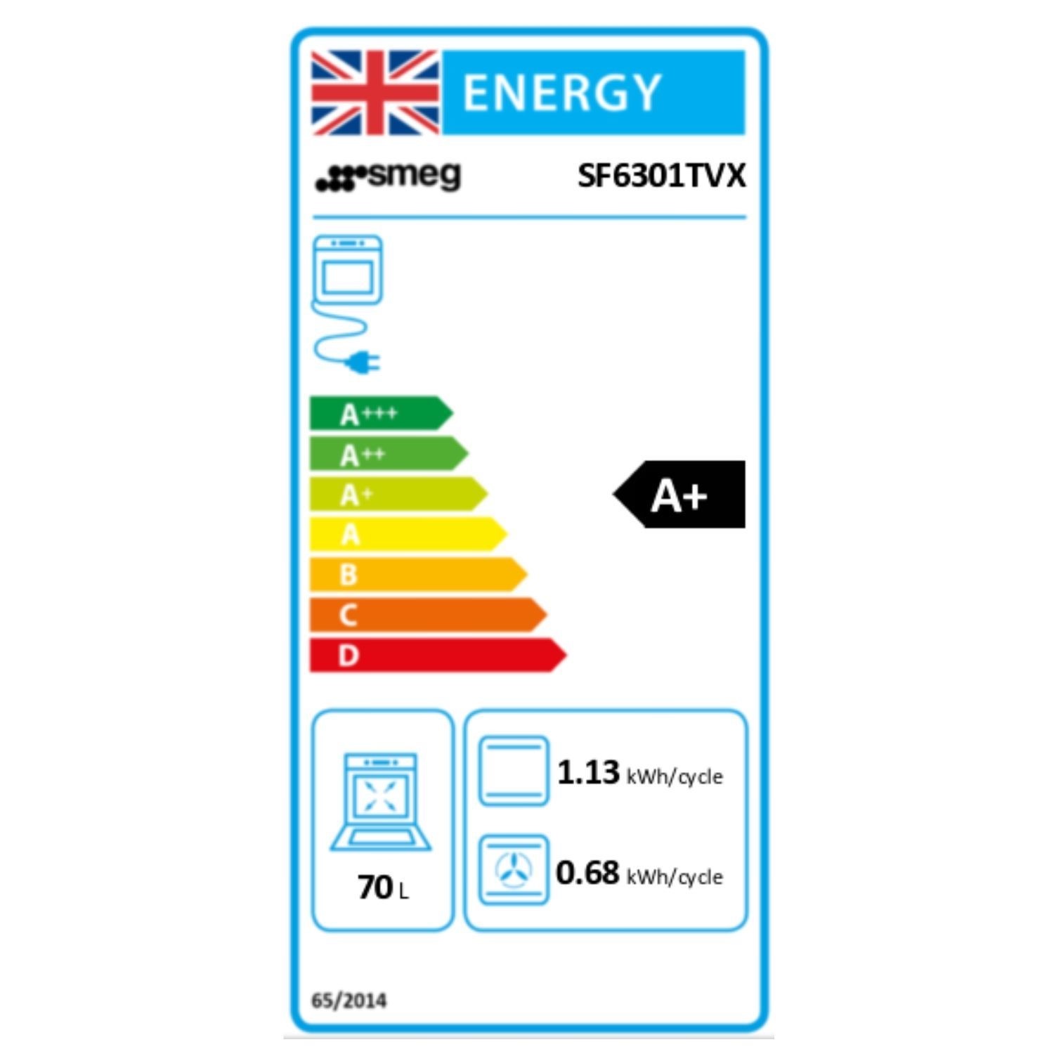 The SF6301TVX Classic single oven from Smeg features a finger friendly stainless steel exterior with eclipse black glass offering enhanced visibility into the cavity of the oven. The large 70 litre interior offers 5 cooking positions and is easy to keep clean thanks to its easy clean enamel interior and the vapor clean function. The oven is also extremely energy efficent with a rating of A+.