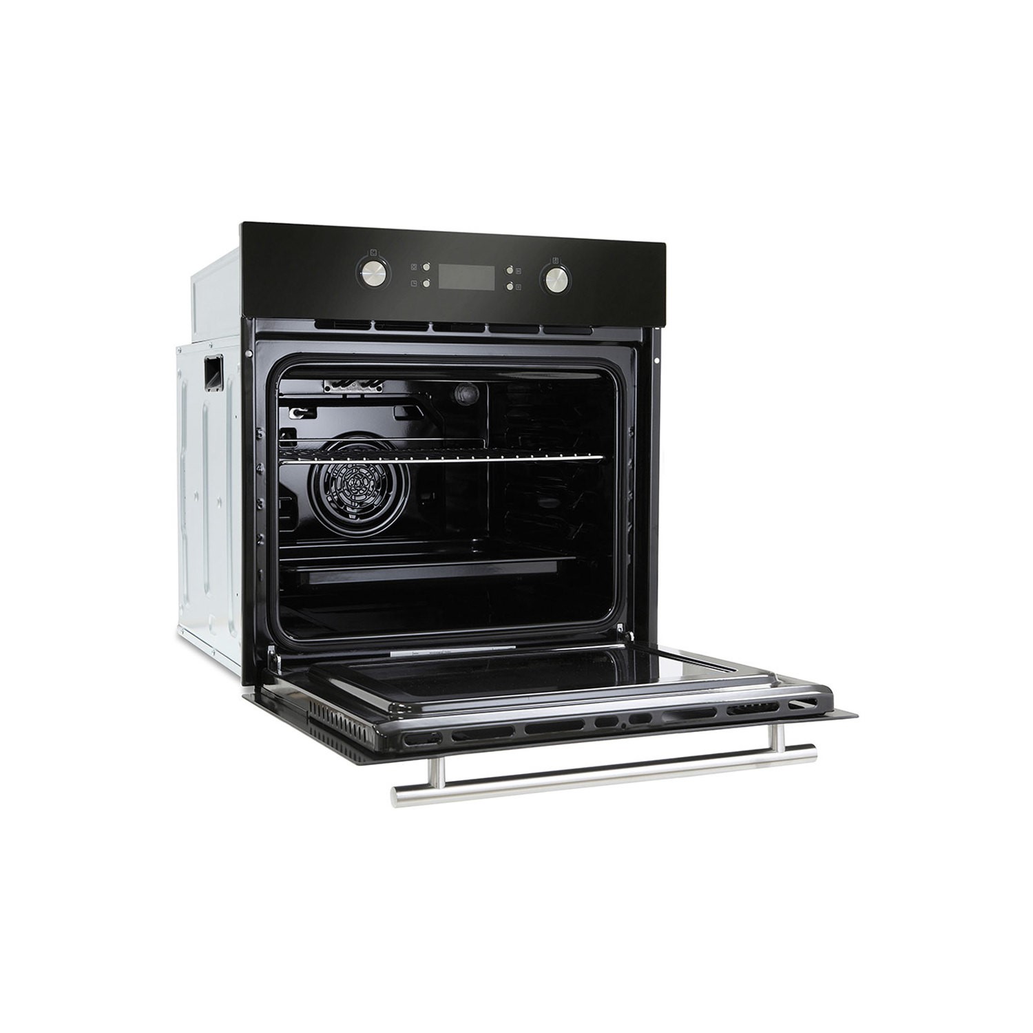 The oven offers a total of nine functions including a full width grill, grill with fan, bottom heating, and a fan mode that circulates the air evenly across all cooking levels to speed up your cooking and deliver perfect results every time! It even has a defrost mode which enables faster thawing time of your frozen food. There’s a timer setting to let you know when it's time to take your food out of the oven, so you can be confident that you won’t be left with burnt or overcooked results. The oven features a clear LED display and two rotary knobs that provide quick and easy operation of all its functions. Both dials are retractable, which makes cleaning the front of your oven even easier.