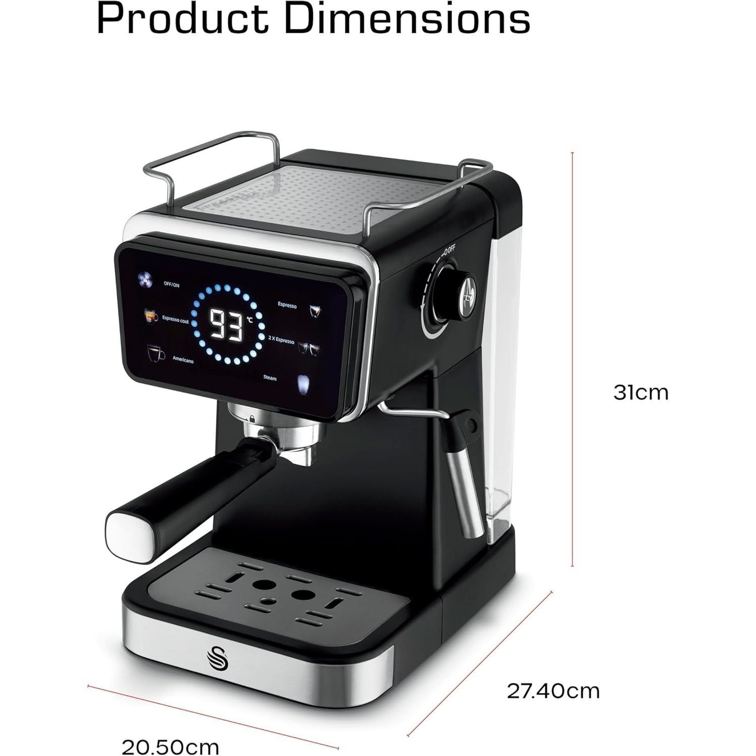 Bring barista-style coffee to your countertop with the Swan SK22113BLK espresso machine — a compact yet powerful choice for coffee lovers who want café-quality drinks at home. Featuring a sleek black finish, intuitive digital controls and a high-pressure steam system, this machine makes it easy to brew rich, flavourful espresso and creamy milk-based drinks without the fuss.