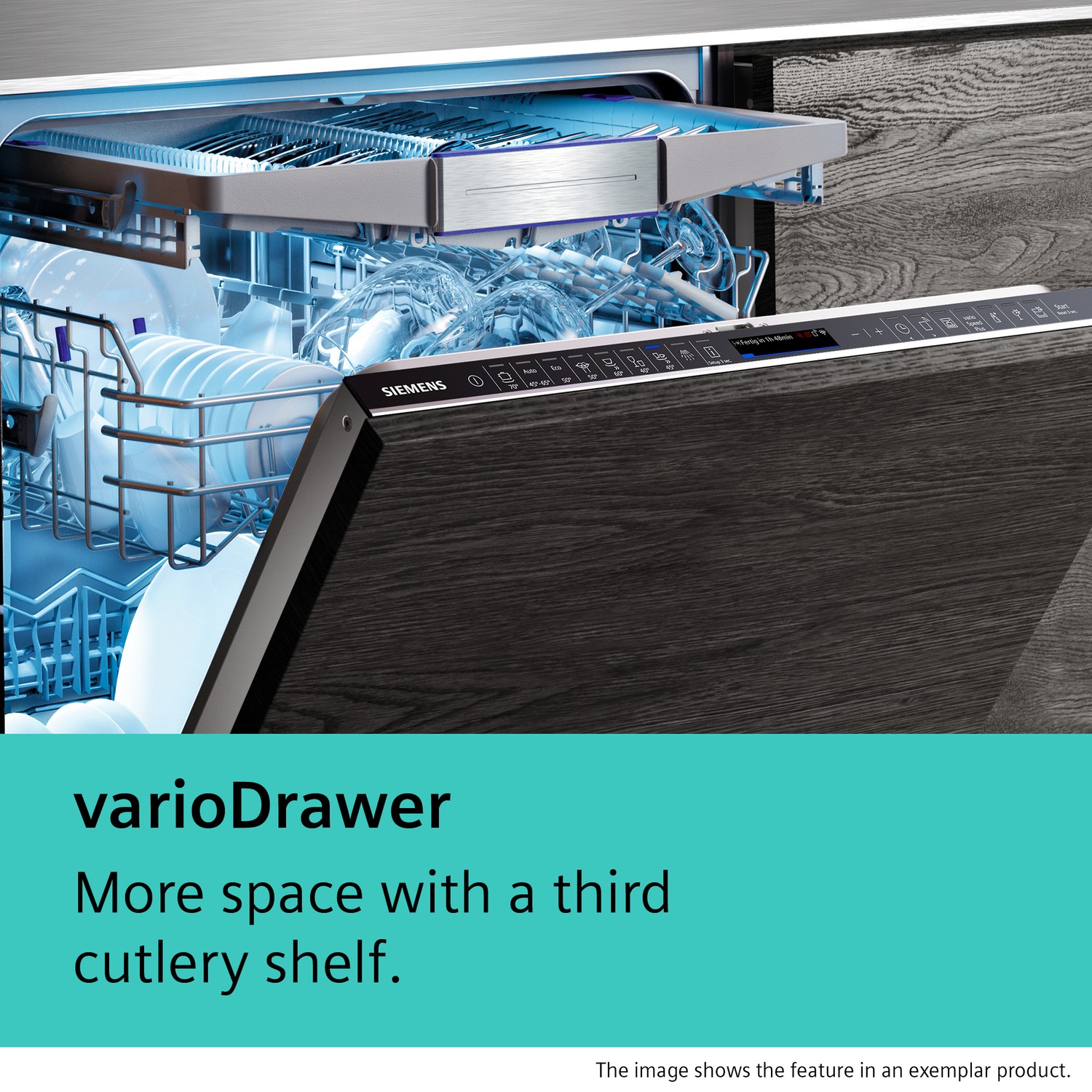 Need your dishes clean fast? varioSpeed Plus gets them done much quicker without losing any cleaning power. Simply press the button at the start, or even speed up a wash from your phone using the app if it's already running.