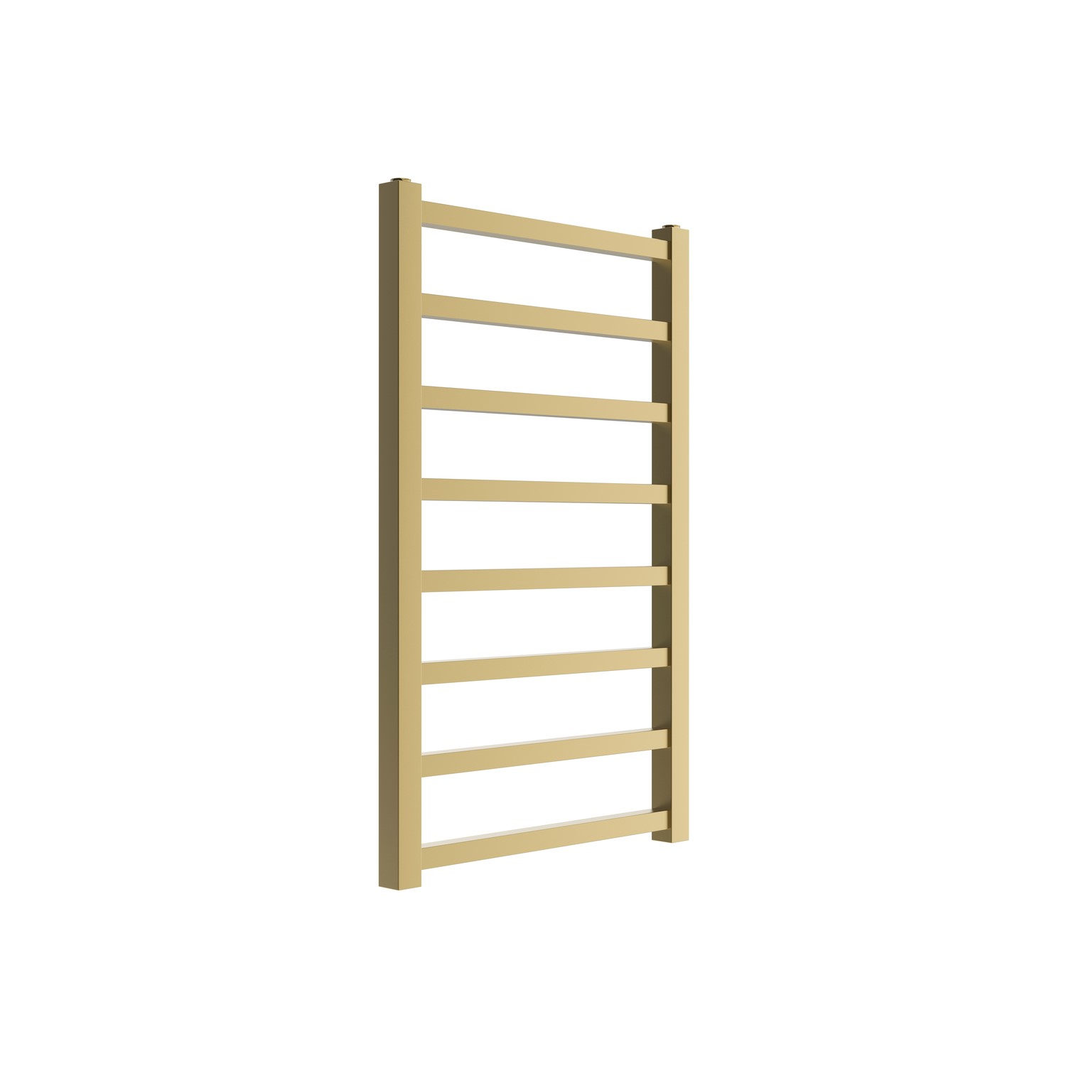 The sleek 8-bar design features square bars that not only add a contemporary edge but also provide plenty of space to hang and dry your towels quickly and efficiently. Its brushed brass finish and minimalist aesthetic make it a stylish focal point for any modern bathroom. Crafted from high-quality steel, this towel radiator is built to endure humid environments. The mild steel material boasts anti-rust and anti-corrosion properties boosting durability, while the excellent heat conduction guarantees lasting warmth. Easy to clean and low maintenance, it’s a smart and elegant solution for both heating and towel storage.