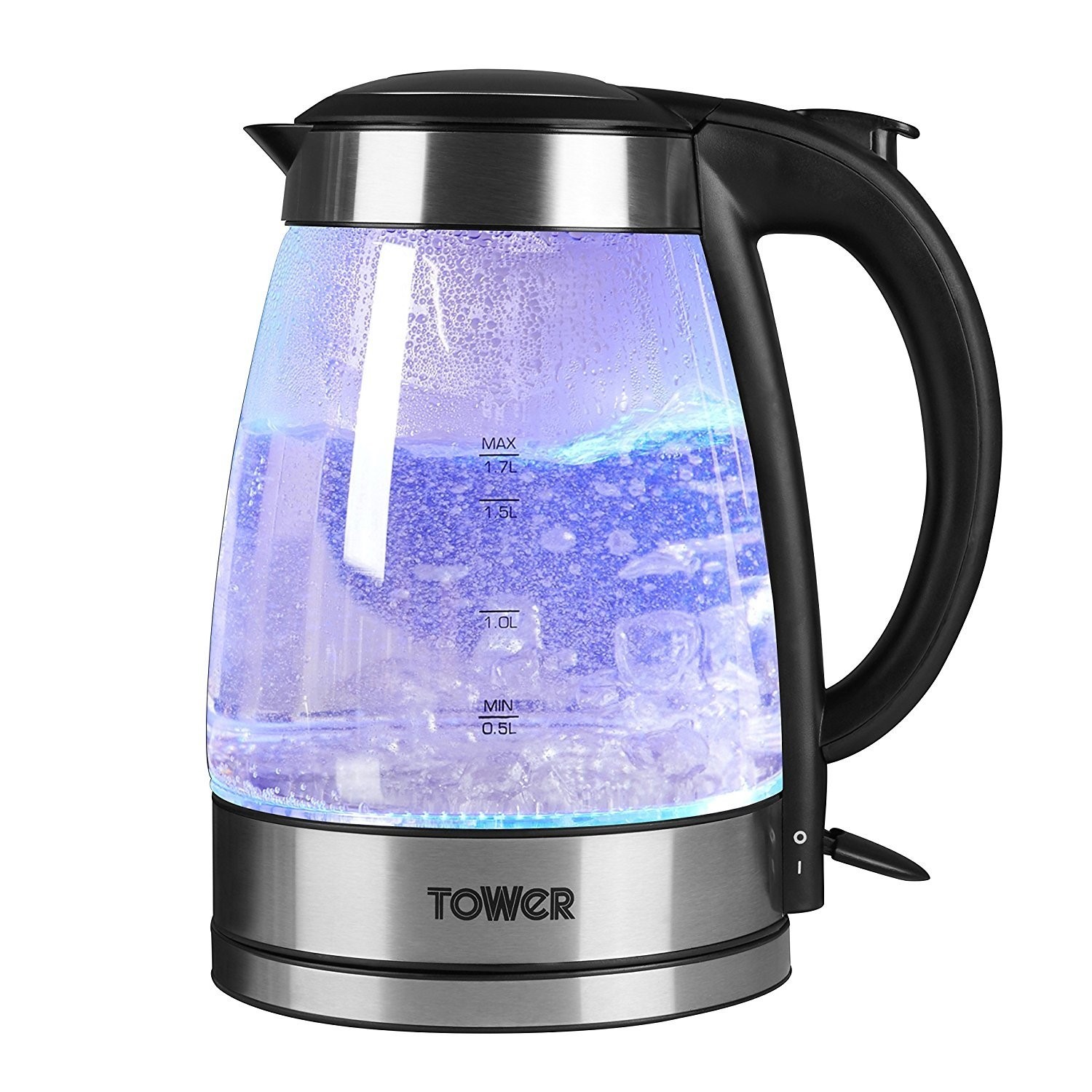 Made from durable, translucent Schott glass and operating at a powerful 2200W, this illuminating glass kettle is a visually striking appliance, sure to become the centrepiece of any kitchen! Boasting a generous 1.7L capacity, which can boil up to 7 cups of water, this kettle comes complete with a number of safety features especially designed to prevent accidents, such as boil-dry protection and automatic shut off. A cordless 360-degree base, perfect for both left and right-handed users, and an On-Off indicator light put the final touches on what is a well-rounded, attractive water boiling aid.