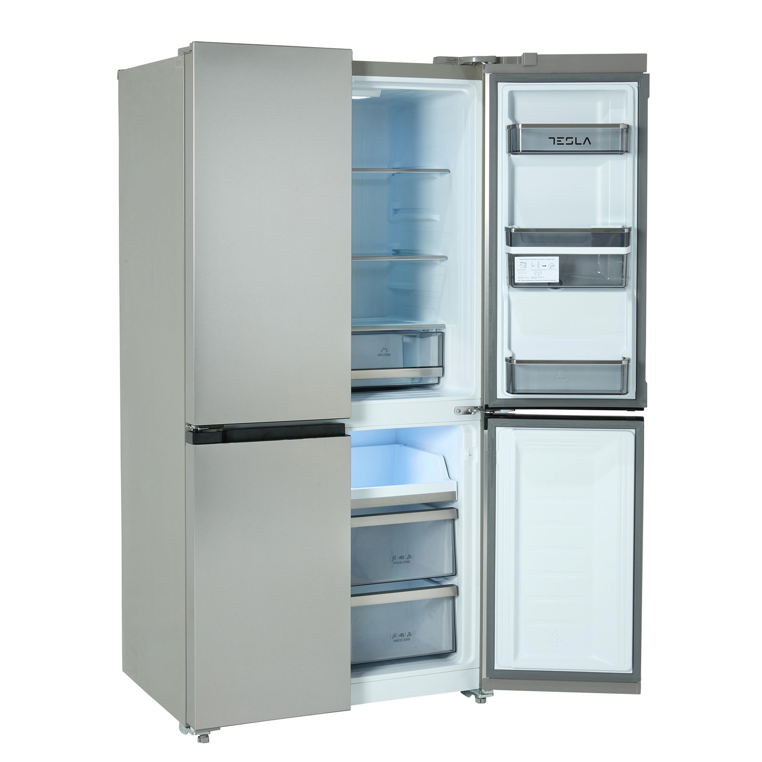 From the iconic Tesla brand, the new range of “TeslaCool” brings a premium range of refrigeration. With a total capacity of 563L split 359L fridge space and 204L freezer space, this appliance gives you ample storage for all your food essentials. The Four doors give you easy access to all your items. Loading and accessing your stored items becomes effortless. With Total No Frost, say goodbye to the tedious task of defrosting and with the quiet inverter compressor, look forward to efficient cooling and a quieter life. The sleek handleless design and its premium features, will enable this appliance to be a standout centrepiece in your kitchen