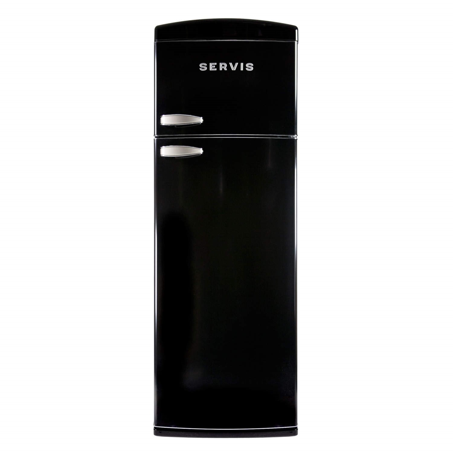 The Servis Retro Fridge Freezer in Black will give your kitchen an instant injection of 1950s style. Curved stainless steel handles and chrome trim, together with a clean crisp interior create a chic addition for any household.