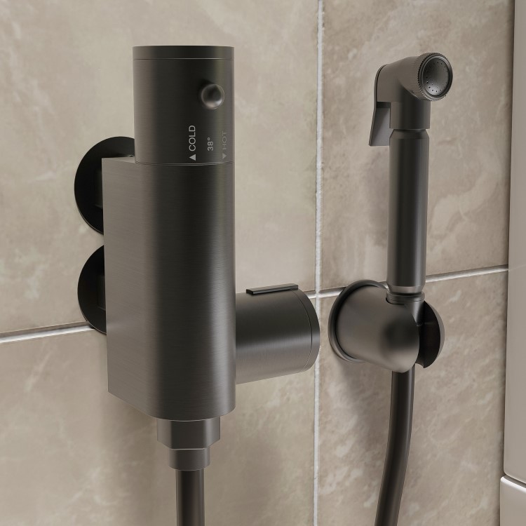 This Gunmetal Thermostatic Toilet Bidet Shower is the perfect solution for homes looking to improve bathroom hygiene with style. With its sleek handheld spray and coordinating bracket, it fits discreetly next to your toilet while providing effective and safe water control.