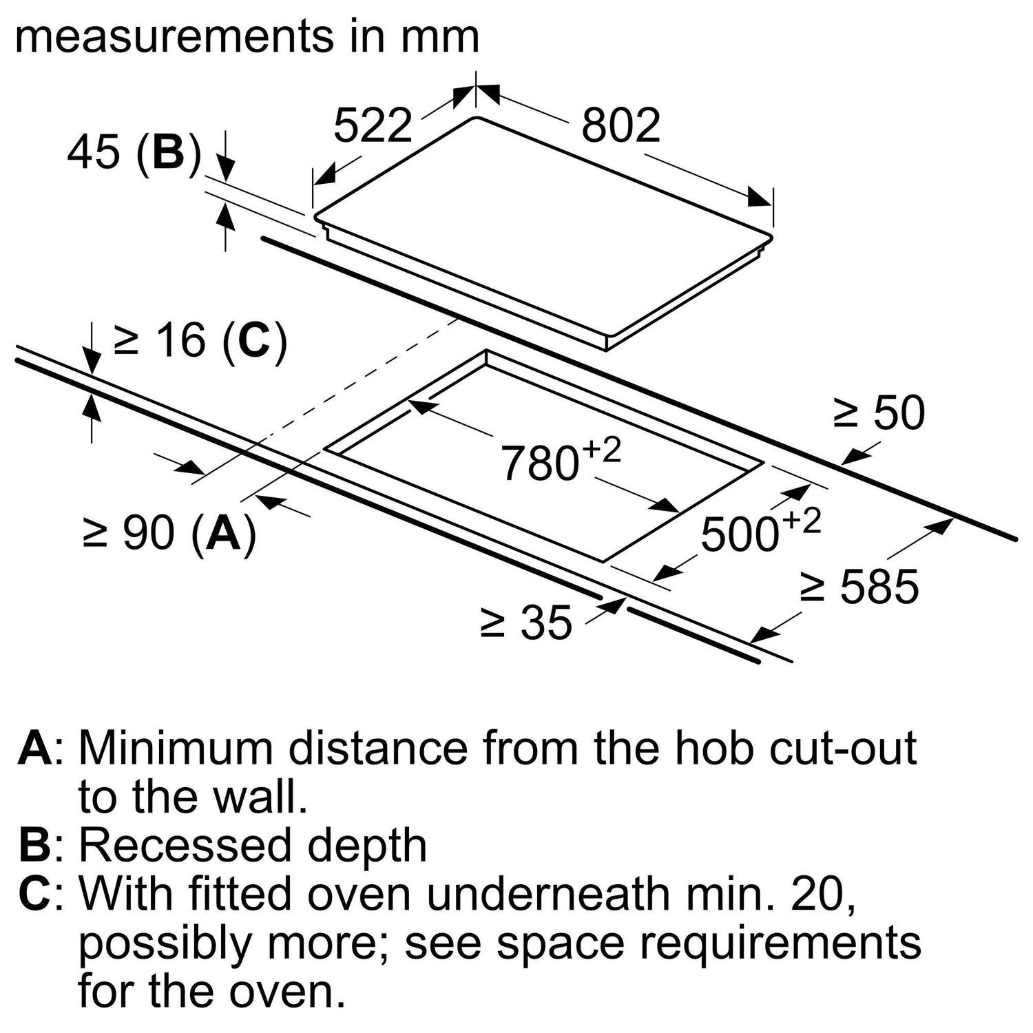 - Dimensions (mm): H45 x W802 x D522