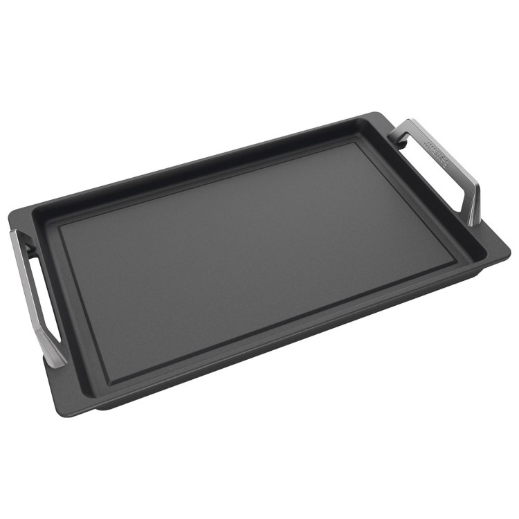 Cook delicious fish, eggs, vegetables and other ingredients easily with this universal Smeg griddle plate. Designed for use on a variety of hob types, it features a non‑stick surface that helps prevent sticking and makes cooking and flipping simpler.