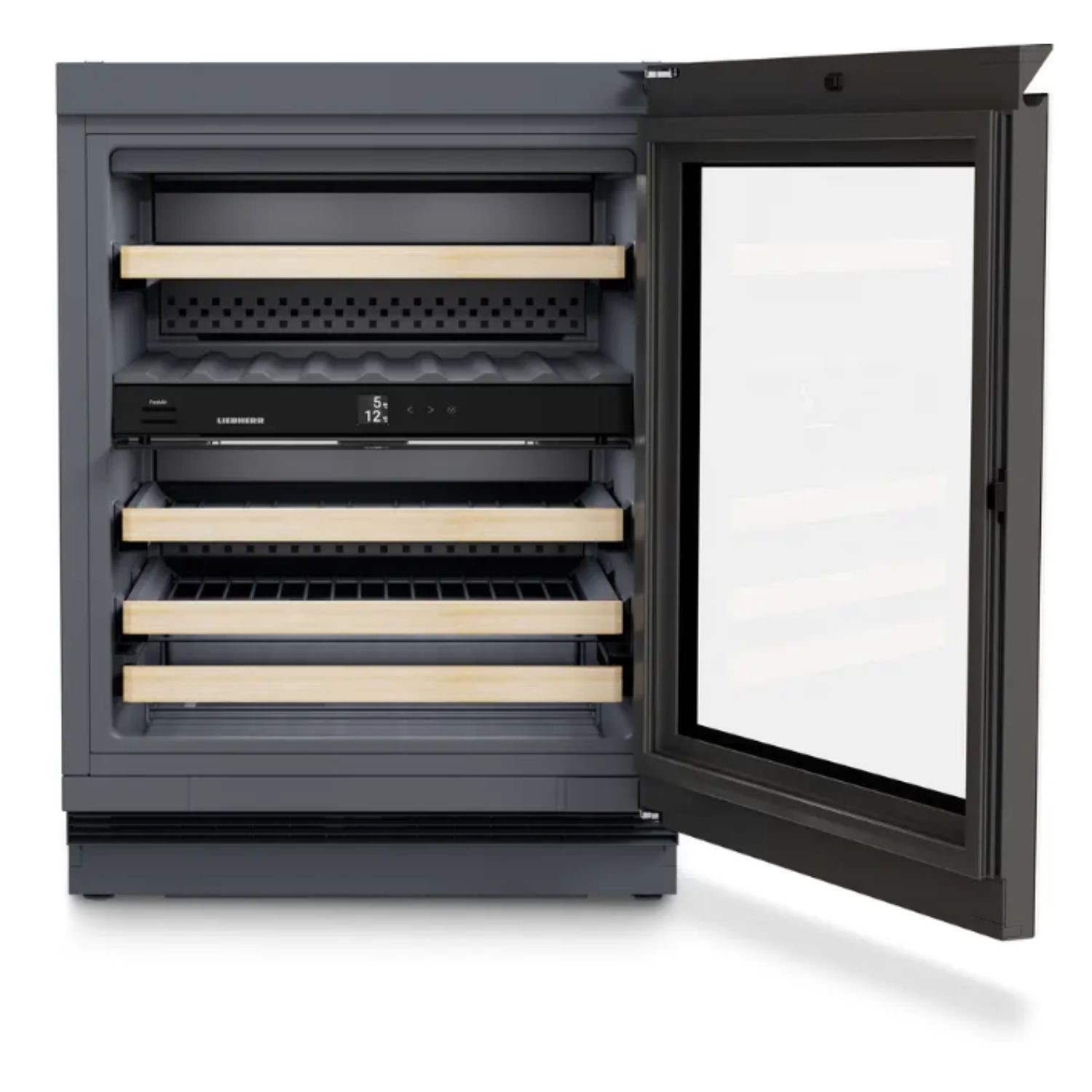 A specially coated glass door blocks UV light, protecting your wines from premature ageing.