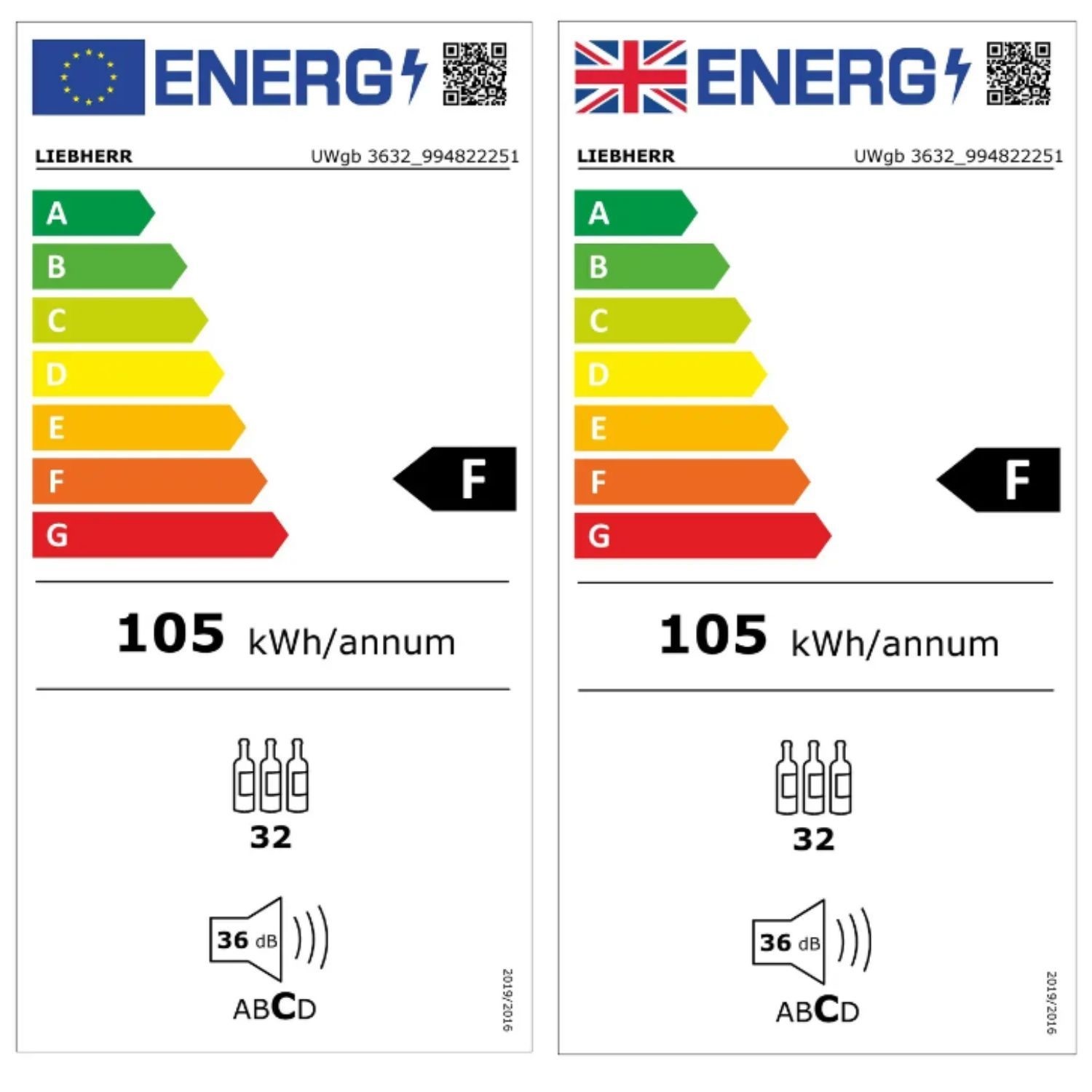 The Liebherr UWgb 3632 is a versatile built-in wine cooler that holds up to 32 Bordeaux bottles across two independently adjustable zones. Each zone can be set between +5°C and +20°C, allowing you to keep red and white wines at their ideal serving temperatures. Advanced humidity regulation and UV-resistant glass provide reliable protection, while SoftSystem door technology ensures smooth and quiet operation. This stylish undercounter wine fridge is the perfect solution for wine lovers who want professional-quality storage at home.