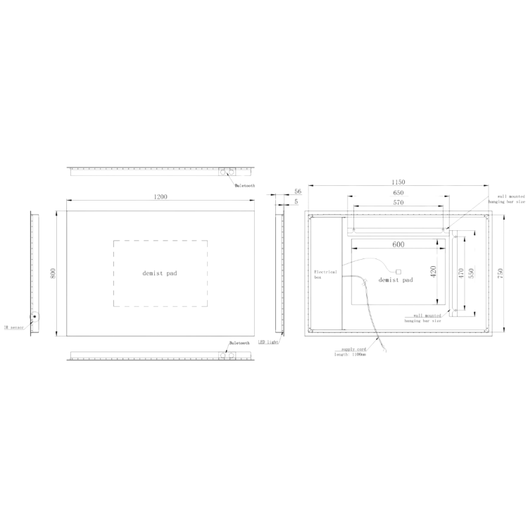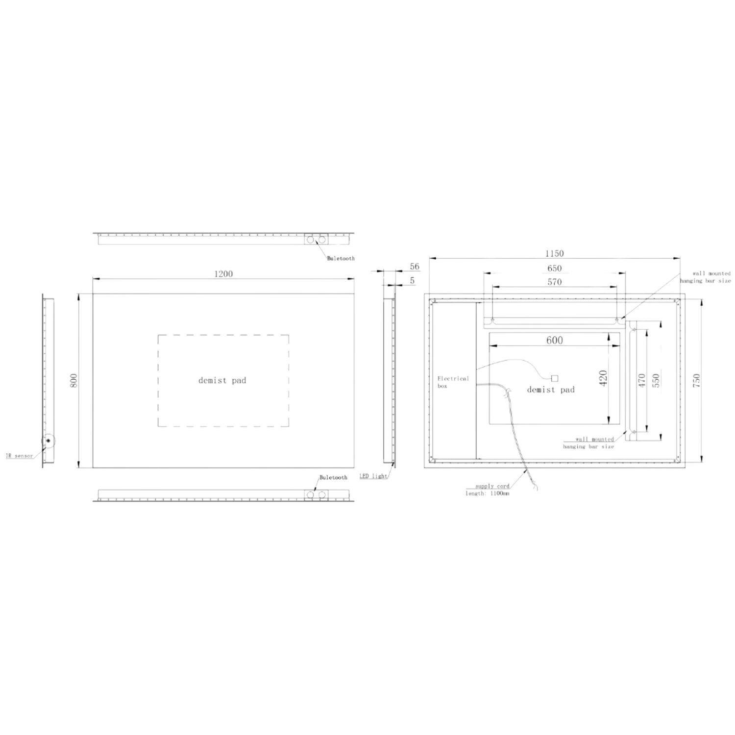 - Mirror Dimensions: H1200 x W800 x D56mm