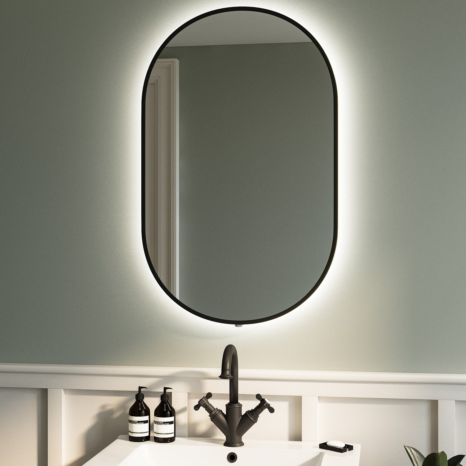 The battery compartment is cleverly positioned on the back of the mirror. Simply remove the cover from the battery box, insert 8 AA 1.5 V batteries (not included), and reattach the cover. The convenient rocker switch, located at the bottom centre when mounted in portrait orientation, allows easy operation of the backlit feature. This battery operated bathroom mirror is IP44 rated, making it perfectly safe for bathroom use. The oval design with its slim 10mm matt black frame adds a contemporary touch whilst providing excellent illumination for your daily routine.