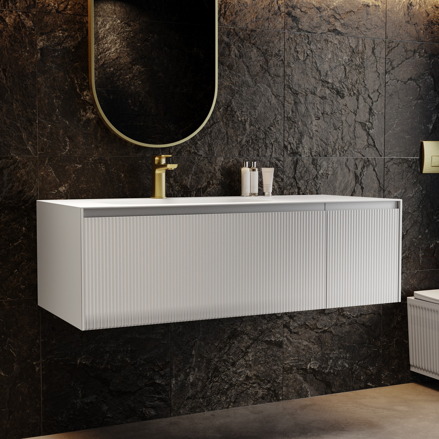 The Venice 1200mm white fluted wall hung vanity unit offers luxury and practicality in one spacious solution. With its extra-wide size and single, seamless basin, it offers plenty of countertop space for easy to grab essentials. Perfect for couples, family bathrooms, or anyone who loves a clean and uncluttered layout.