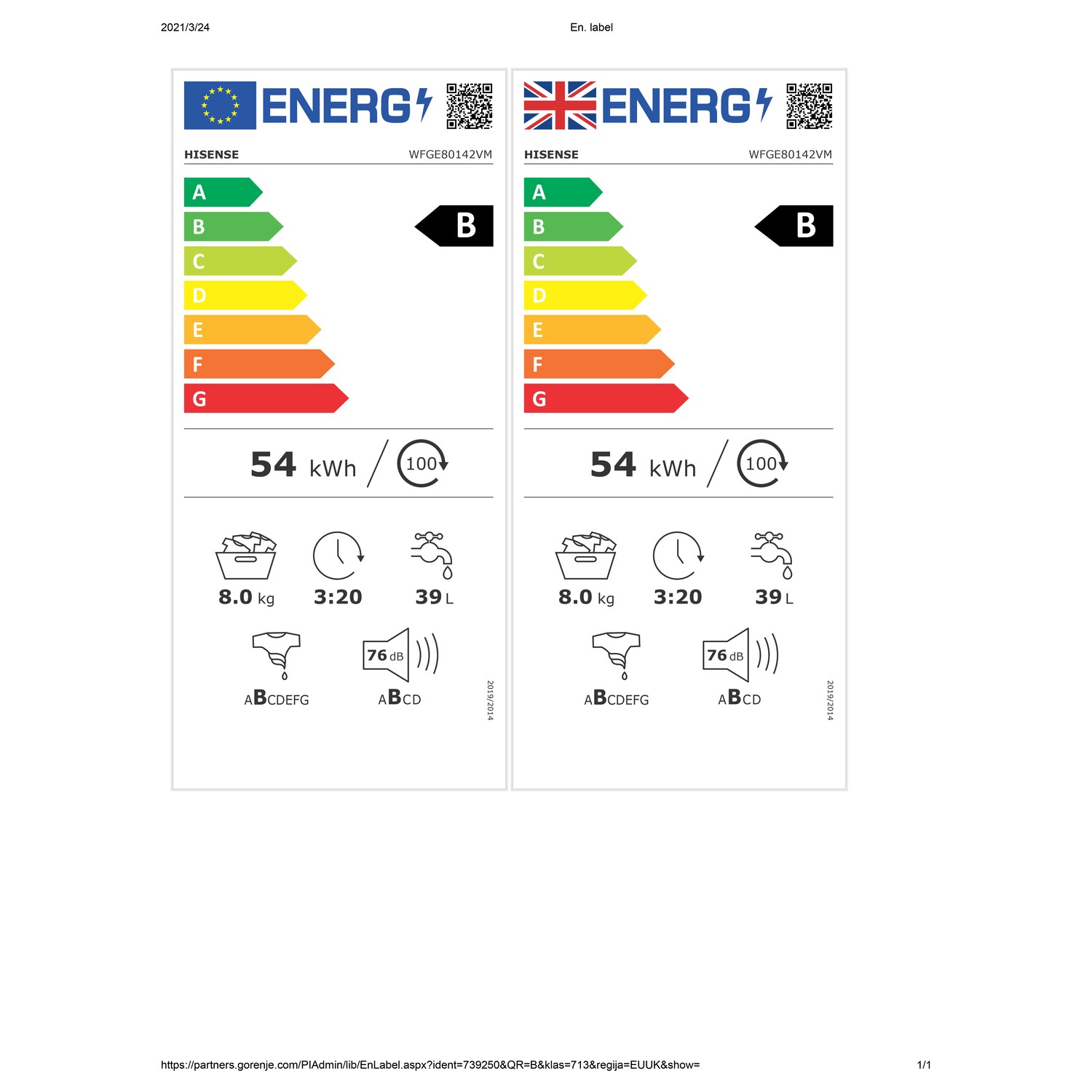 Hisense WFGE80142VM washing machine come with 16 programs including steam technology that removes 99.9% of bacteria and yeast, all whilst reducing creases, you'll breeze through your ironing once the laundry is done.