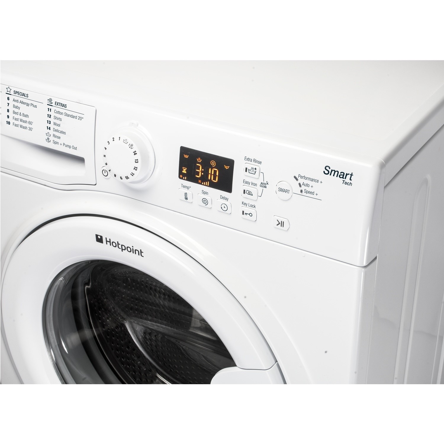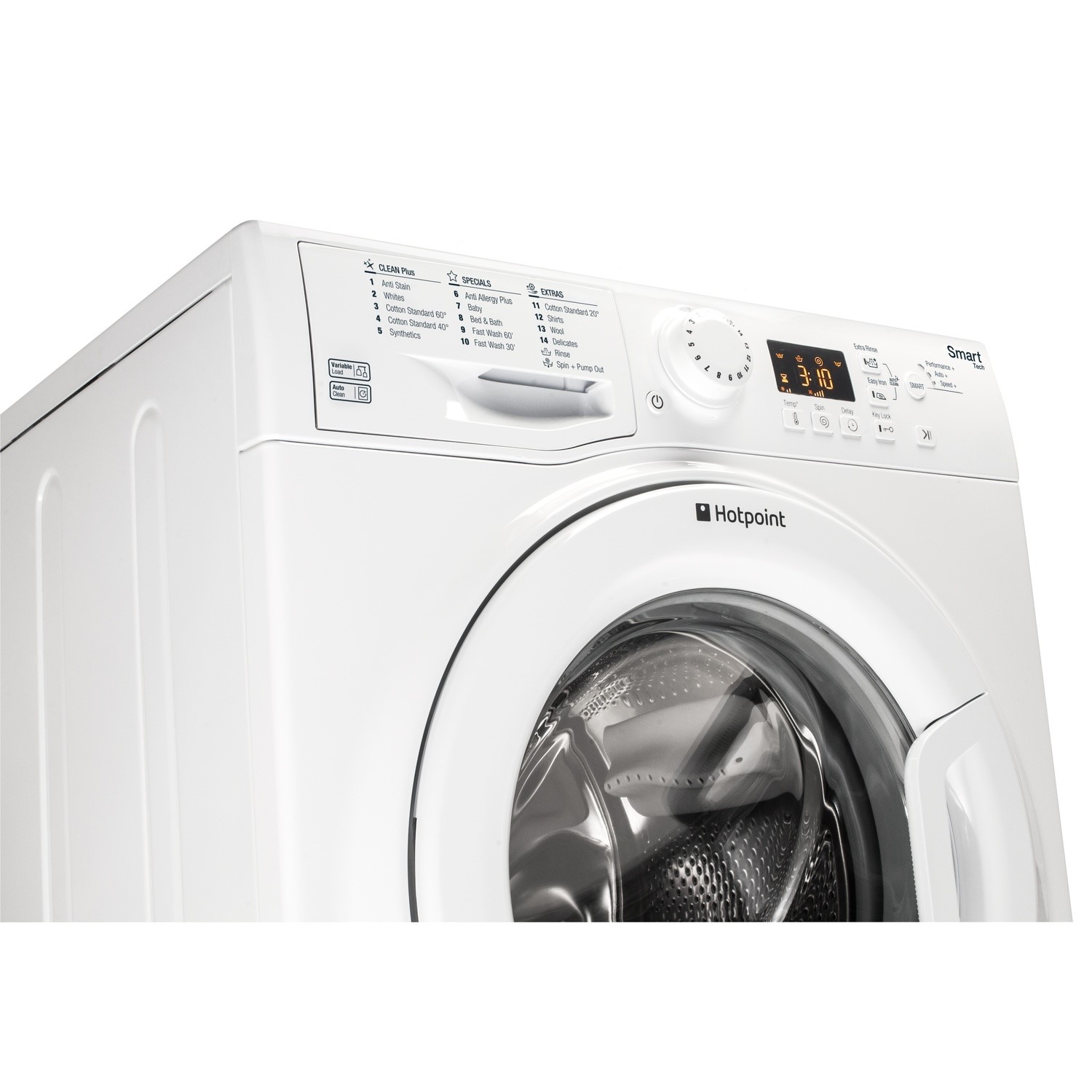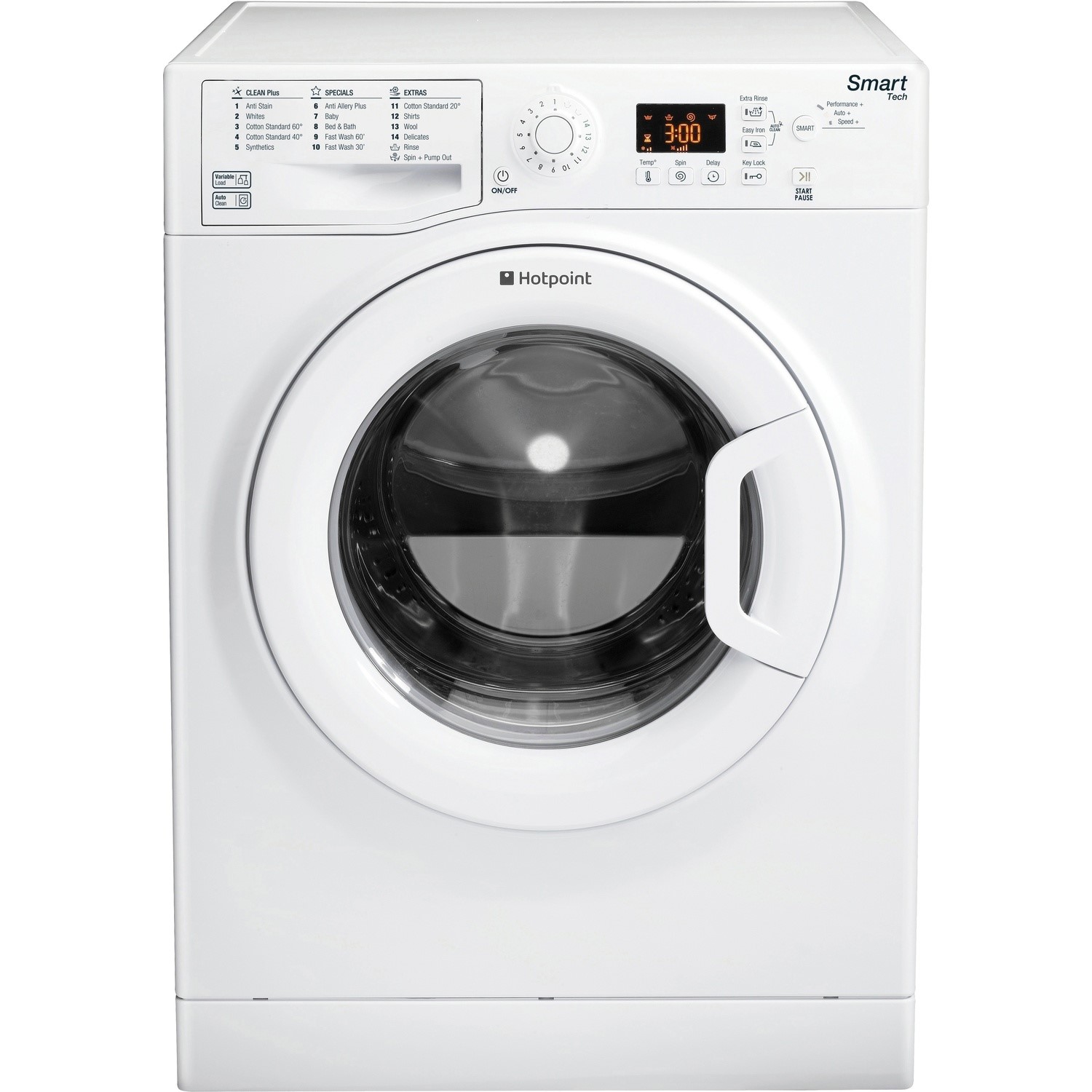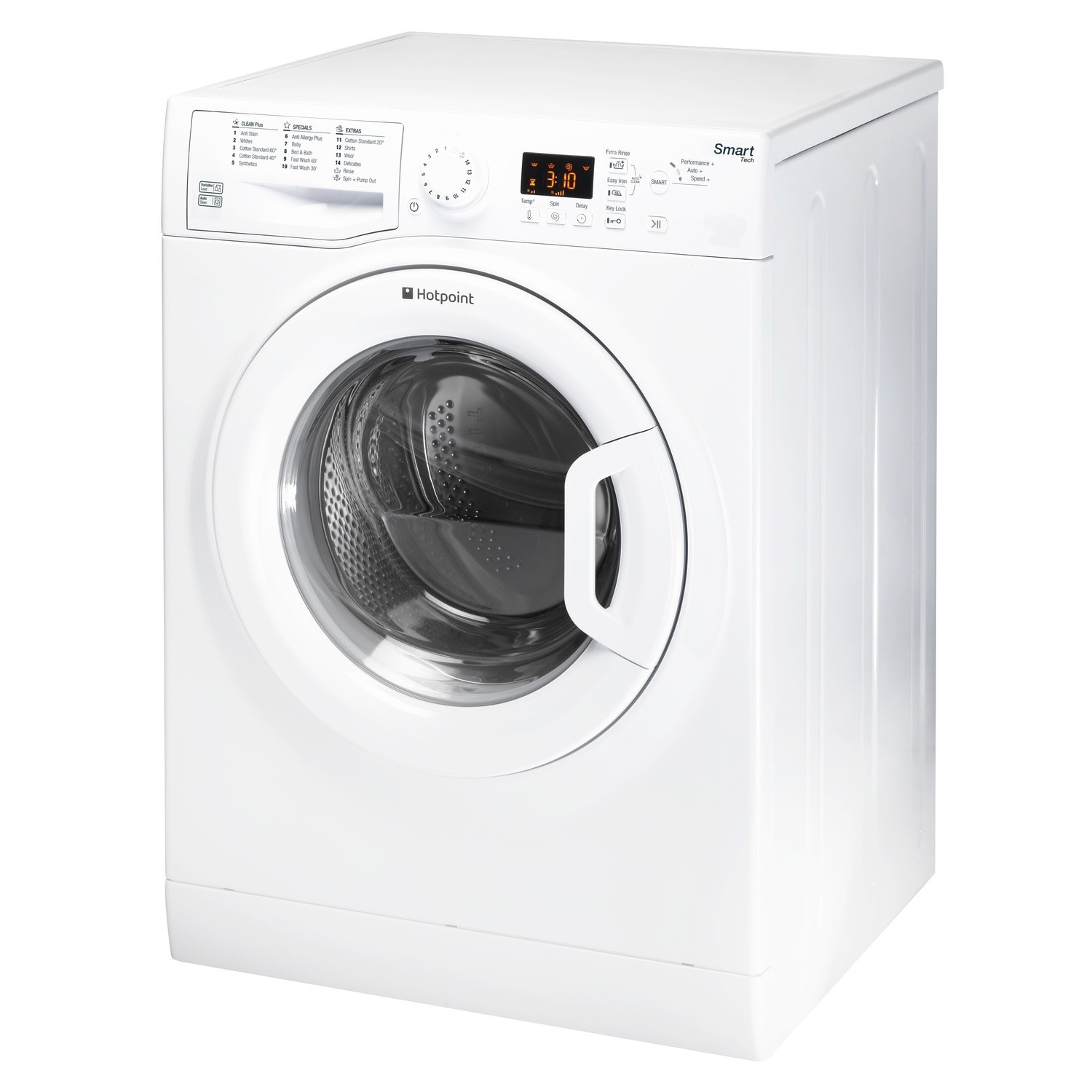 This Hotpoint freestanding front loading Washing Machine features: a spacious 8kg capacity. A fast, resource-efficient 1600 revolutions per minute spin speed.