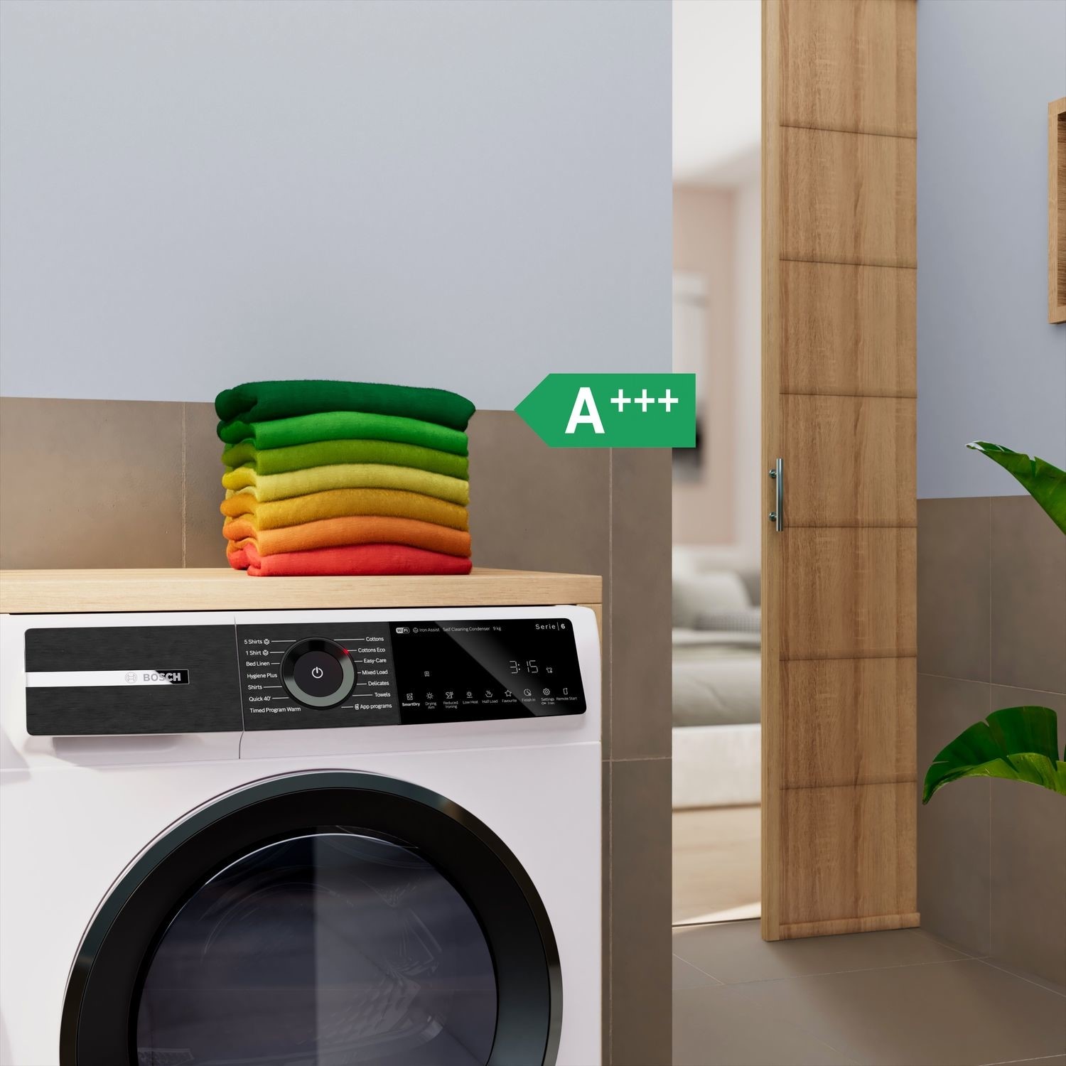 Save money on your energy bills. This dryer is rated A+++ -10%, making it super-efficient. That means it uses less power than standard A+++ models, helping you cut down on running costs while still getting your clothes perfectly dry.