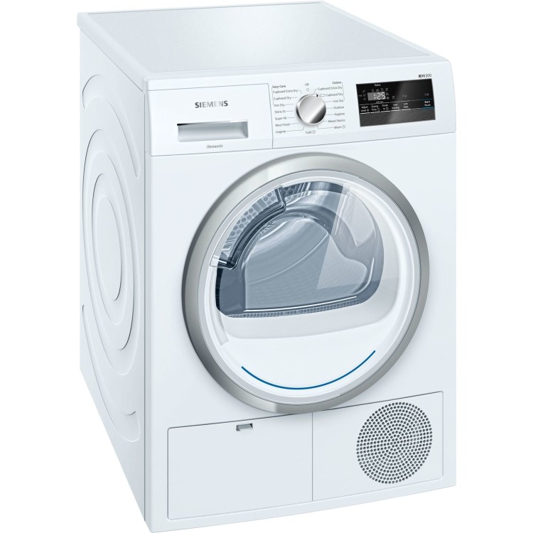 - Touch control buttons: low heat, programme length, start/pause, less ironing, fine-tuning for drying level, 24 htime delay