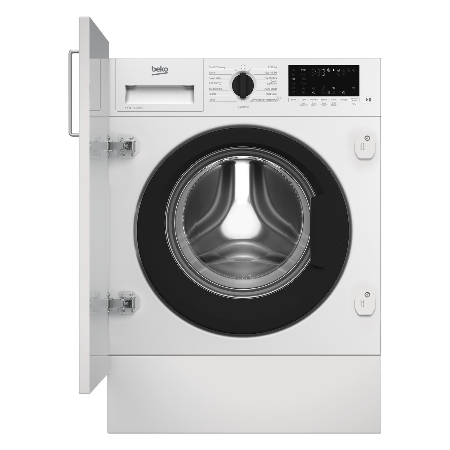 Perfect for busy families, this integrated washing machine features our Quick Programme, offering users the ability to wash a large 8kg load in just 28 minutes. And, for smaller loads, the Super Quick Programme can wash a 2kg load in just 14 minutes. Recycled plastic bottles have also been used in up to 10% of the machine's tub, in an effort to reduce the product's embedded carbon footprint.