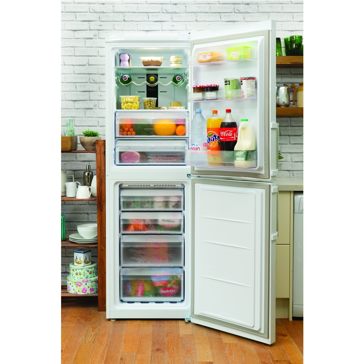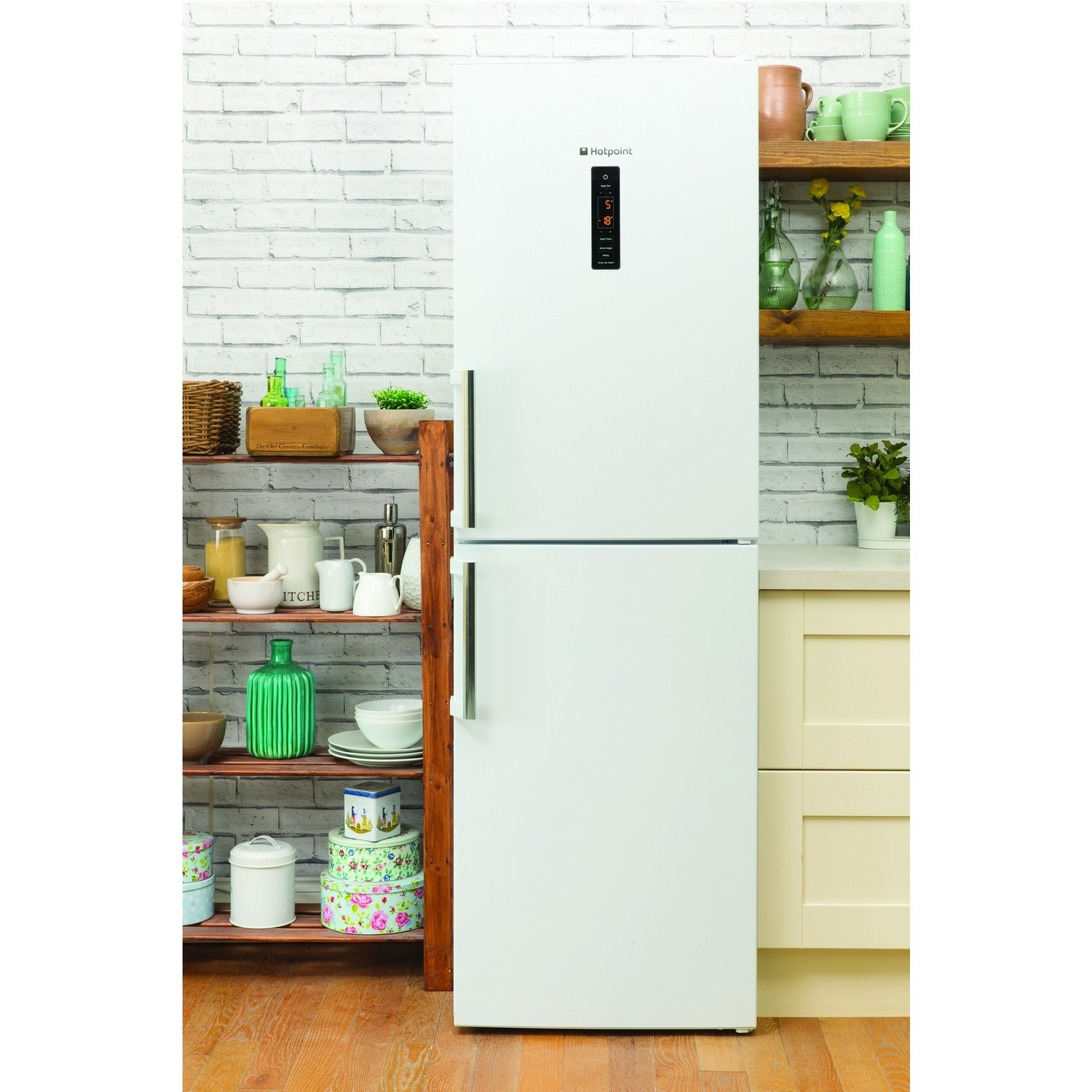 The Hotpoint Day 1 Ultima XUL85T1ZWOJH Fridge Freezer in polar white guarantees optimum food preservation and is part of the Day 1 Fresh Technology Range that maintains first day freshness up to 13 days. This intelligent technology consists of Active Oxygen that helps to prevent growth of bacteria protecting you and your family and the the 3-in-1 zone that provides 3 functions you can choose from to preserve your food. Also comes with an innovative Ultra Fresh Crisper that will extend the life of your fruit and vegetables featuring an Active Fresh Filter that gives you flexible space retaining optimum humidity levels for your food. You will never have to defrost your fridge and freezer again thanks to its fully frost free technology with improved cold air circulation that prevents ice build up. Saves cost on your utility bills with its A+ energy rating saving you money and stylish with its sleek design that will look enticing inside your kitchen.