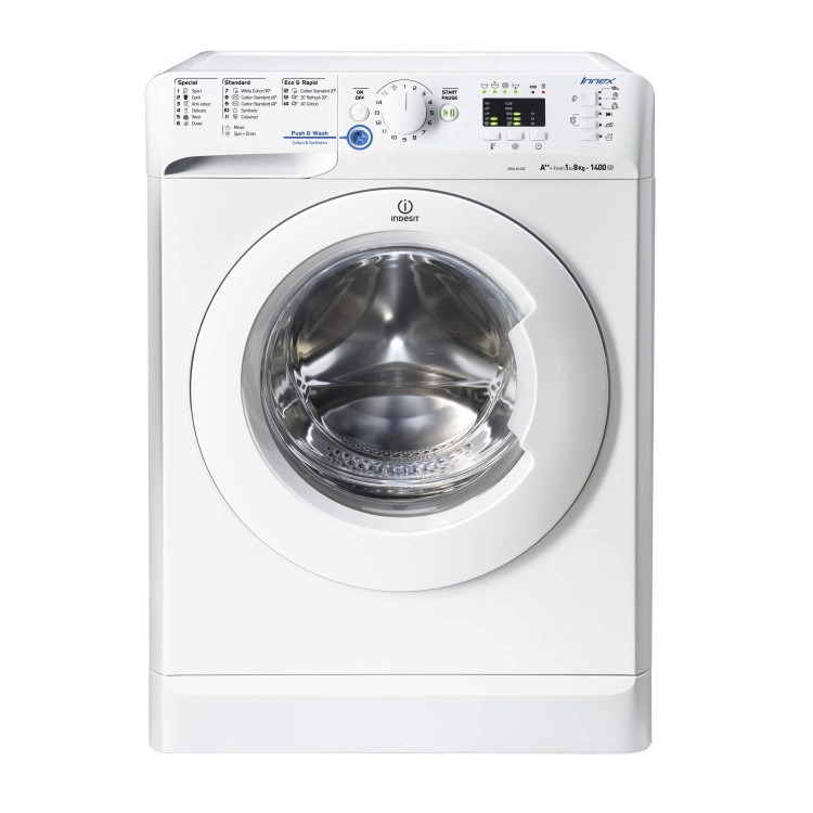 This Indesit Innex Freestanding washing machine is a great all-round model, jam packed with useful features including a "Push and Wash" button to make your life easier. It boasts a sizeable 8kg capacity load and a variety of wash programmes to suit all your washing needs. The XWA81482XW even offers an excellent A++ energy rating to help keep your energy costs to a minimum.