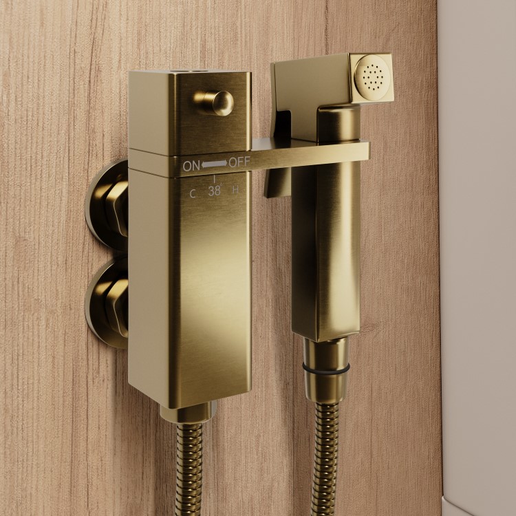 The built-in thermostatic valve keeps water temperature consistent and shuts off instantly if the cold-water supply fails—making it safe for all users. Whether for a modern home or a commercial washroom, this douche kit adds both function and finesse. With its PVD brushed brass surface, it’s easy to clean and designed to last.
